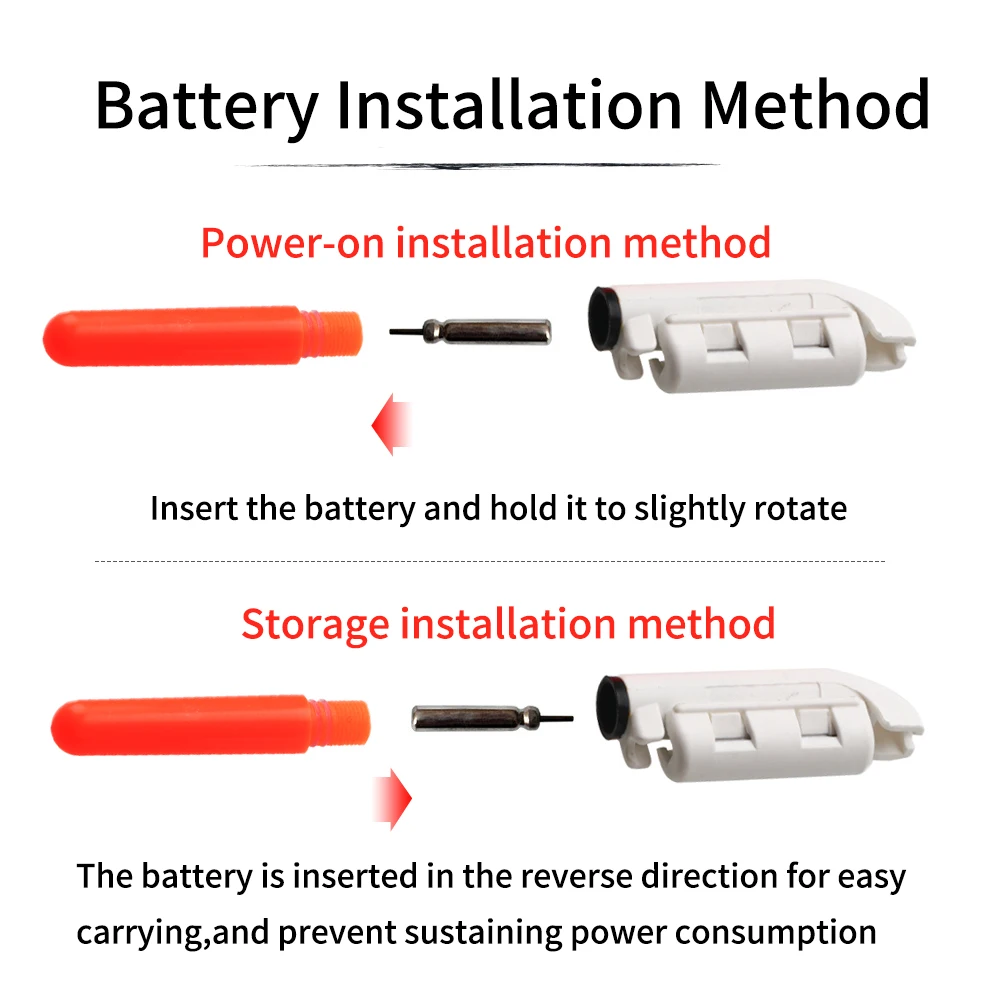 Método de instalación de encendido: Inserte la batería y sujétela para girar ligeramente