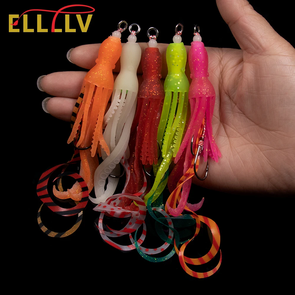 Ellllv-Falda de calamar suave con gancho de asistencia de calidad, señuelo luminoso para pesca, anzuelo jigging, pargo de agua salada, mero, 1 unid/bolsa