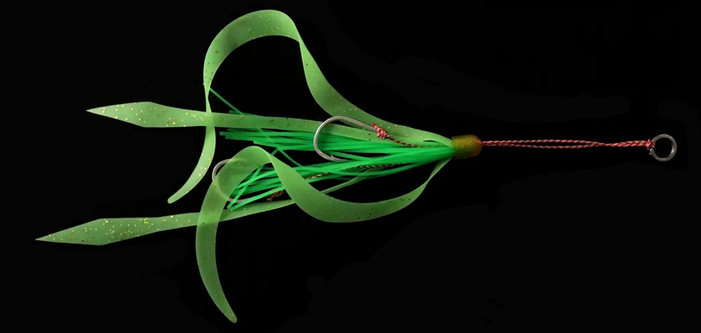 1 pieza de anzuelo de pesca en agua salada, señuelo Snapper, falda de goma de silicona, aparejo Aqurbber, piezas flotantes combinadas de goma deslizantes