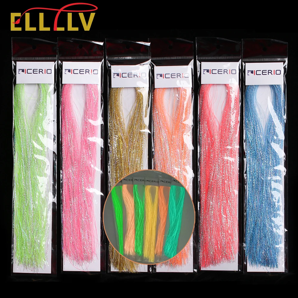 Ellllv 50cm de longitud luminosa Flashabou Tinsel Flash fibra mezclada Material para atado de moscas para serpentinas faldas de cola de mar señuelo de pesca