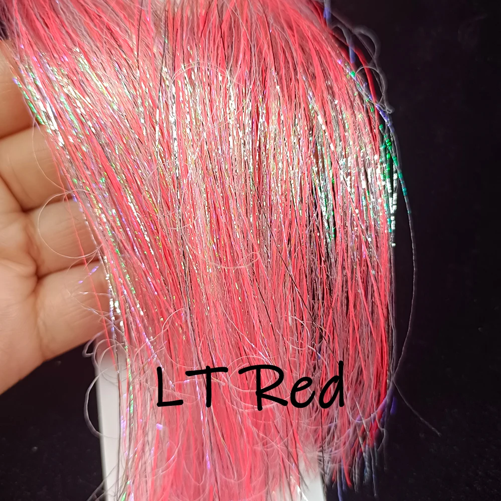 Se trata de una combinación imaginativa de colores incorporadas en fibras flashabou luminosas, suaves, finas y reflectantes de luz que logran una apariencia realista.Altamente recomendado para teaser bucktail, steelhead, moscas de salmón y todas las serpentinas.