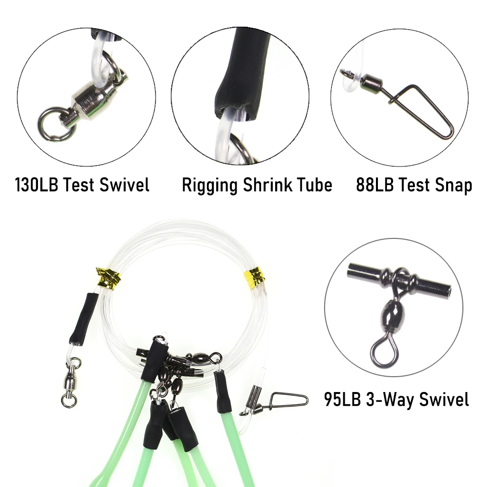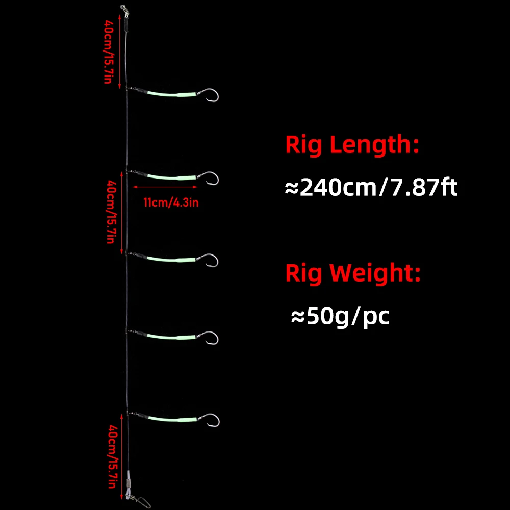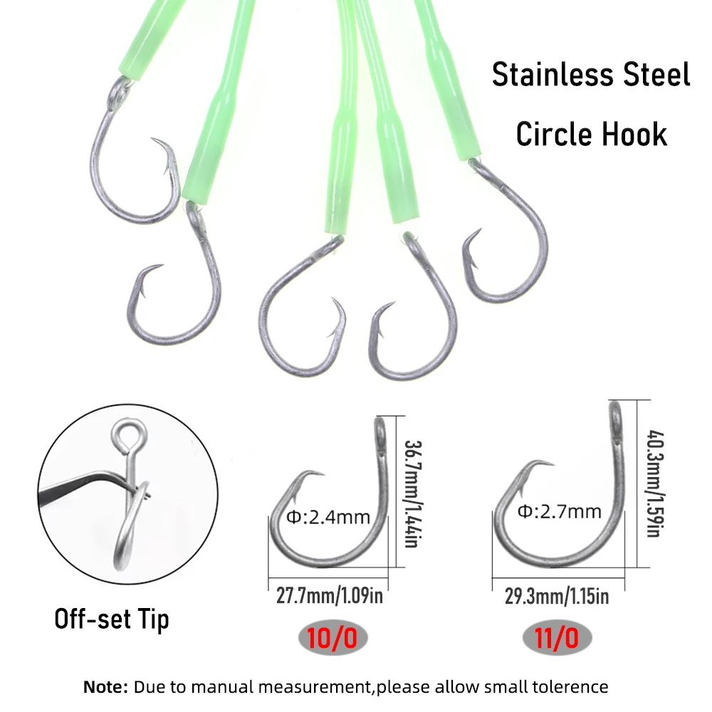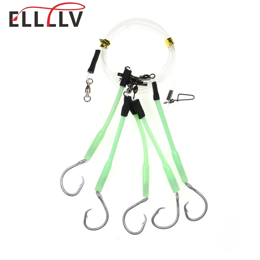 -Eficiente aparejo de pargo profundo con 5 anzuelos circulares y fundas protectoras luminosas, perfecto para apuntar a peces de azulejos, meros, pargo rojo, atún, tiburones, etc.