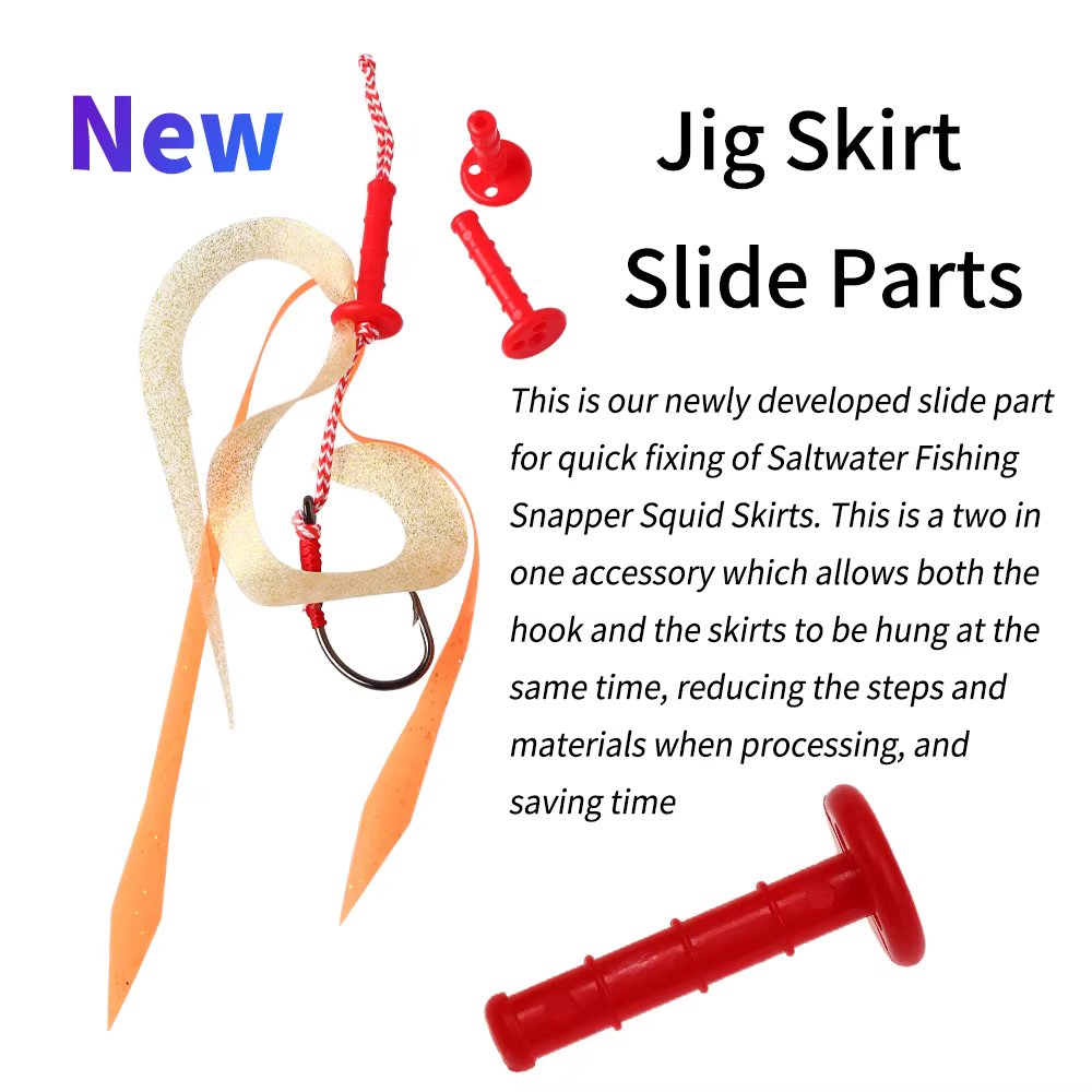 Ellllv, piezas de deslizamiento de plástico cilíndricas largas Rojas, faldas de silicona pargo, corbata de goma, piezas fijas, accesorio de señuelo de pesca de agua salada