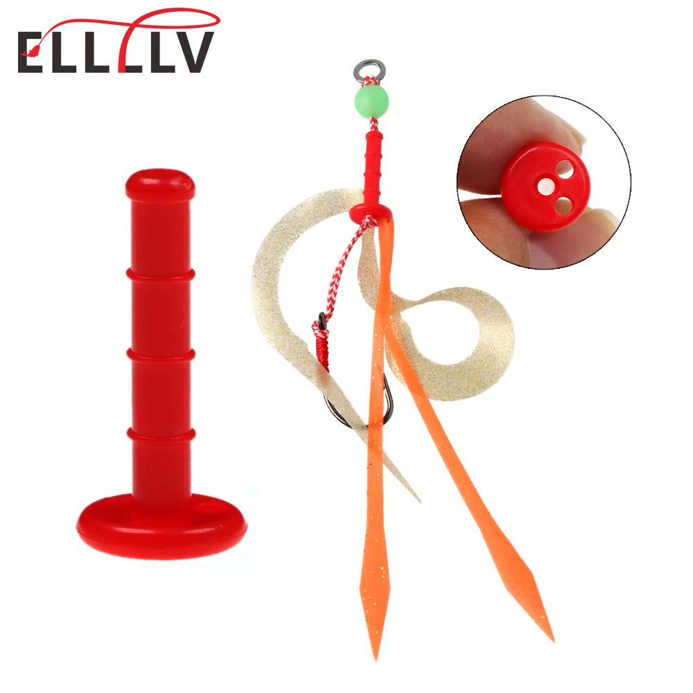 Ellllv, piezas de deslizamiento de plástico cilíndricas largas Rojas, faldas de silicona pargo, corbata de goma, piezas fijas, accesorio de señuelo de pesca de agua salada