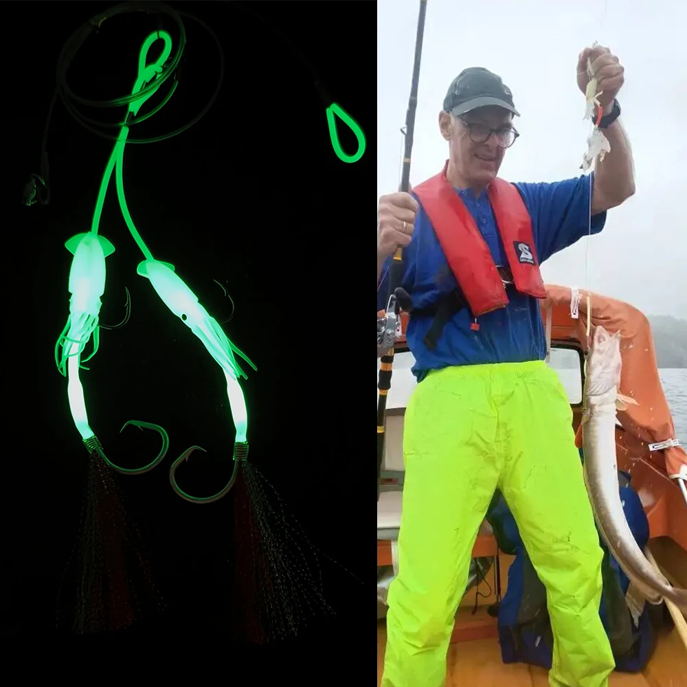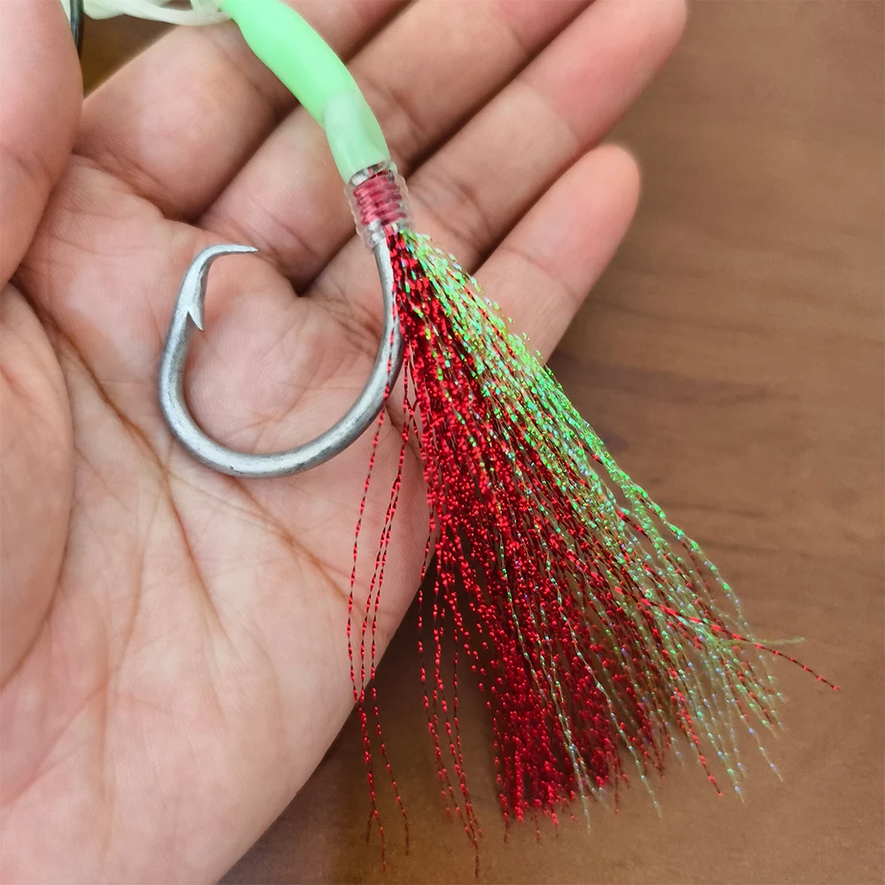 Ellllv-Pesca en aguas profundas, aparejo de 4 anzuelos con línea Mono de nailon resistente, señuelo luminoso para calamar, marlin, Snapper, atún, tiburón, aparejos de pesca con curricán