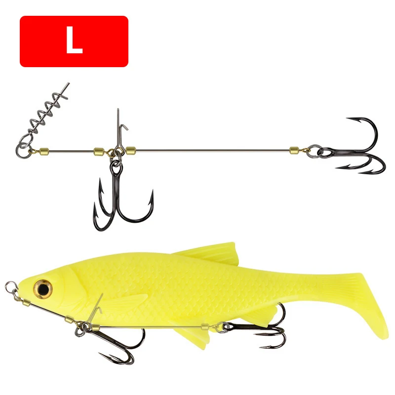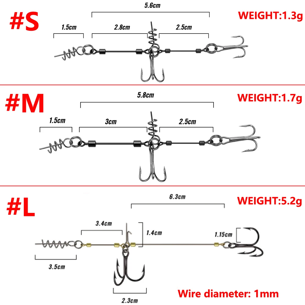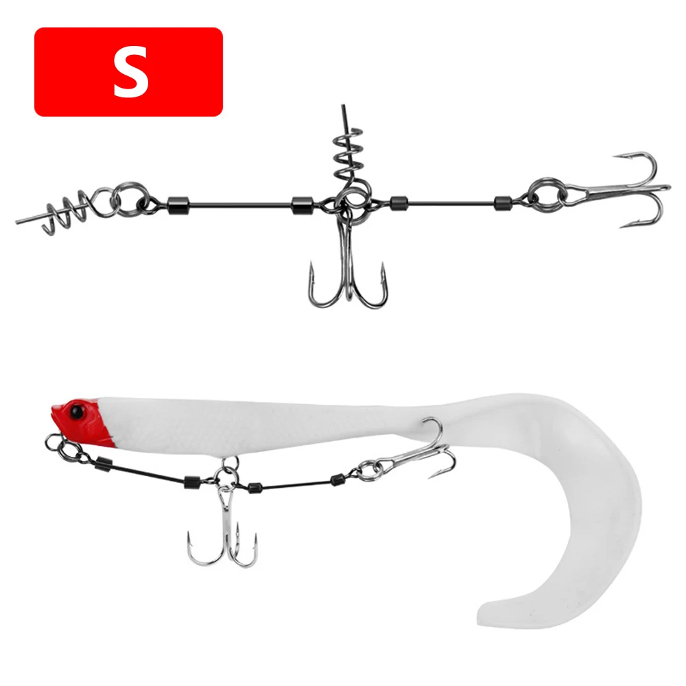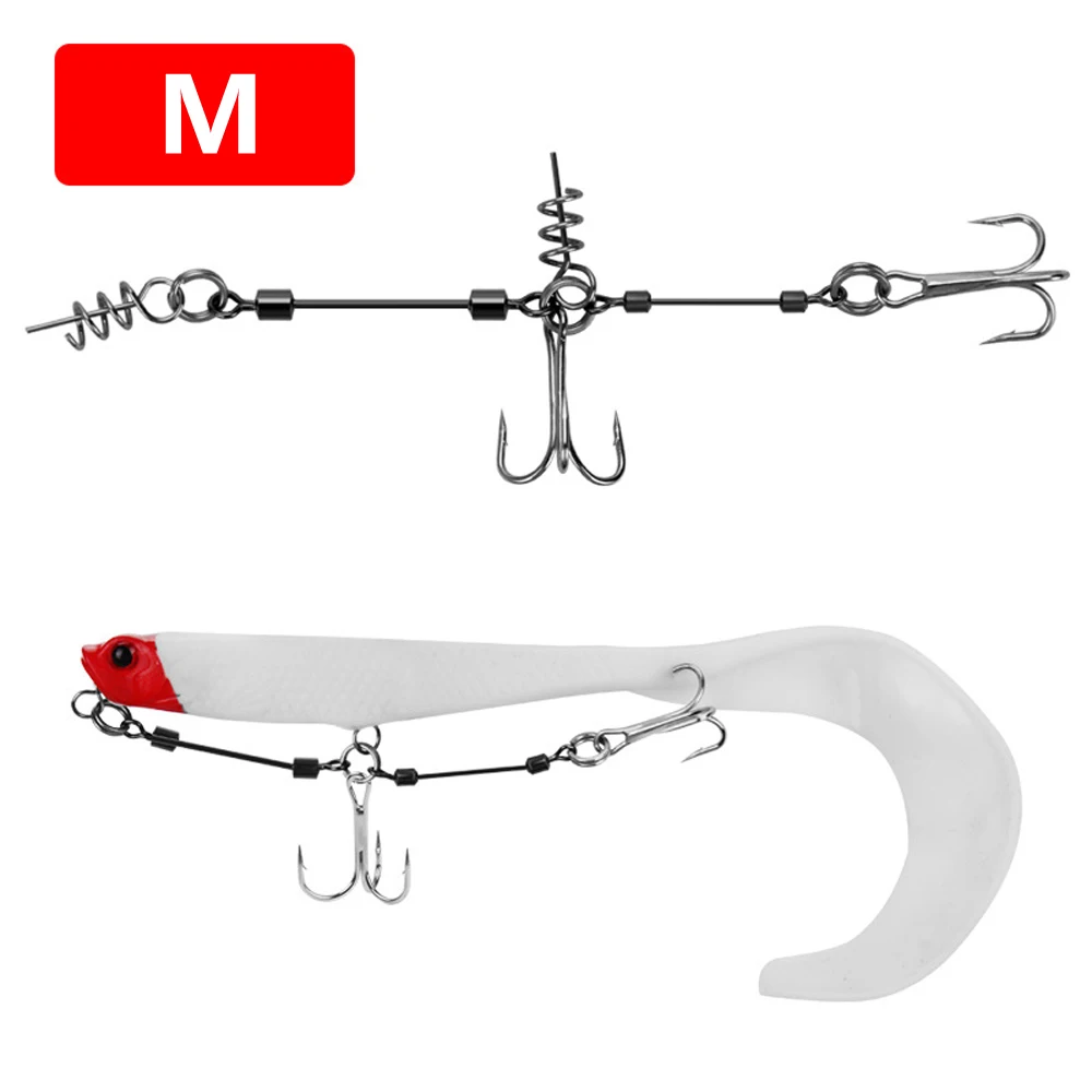 1pack S M L Fishing Soft Lure Steel Wire Rig Double Treble Hook With Spring Lock Pin For Big Soft Shad Tackle