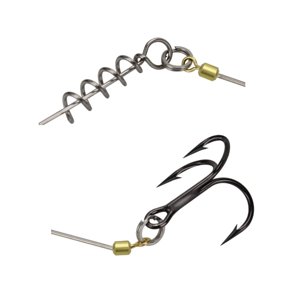 Configuration: Bold large spring lock pin is used to fix the lure. The high-quality three hooks are strong and sharp. The swivel one-piece steel wire can be used for 360° rotation. The anti-slip buckle assists the fixed lure. The flattened double ring is more solid and bears weight bigger.