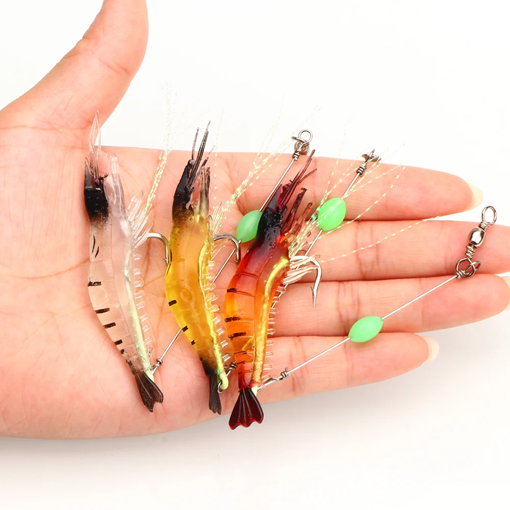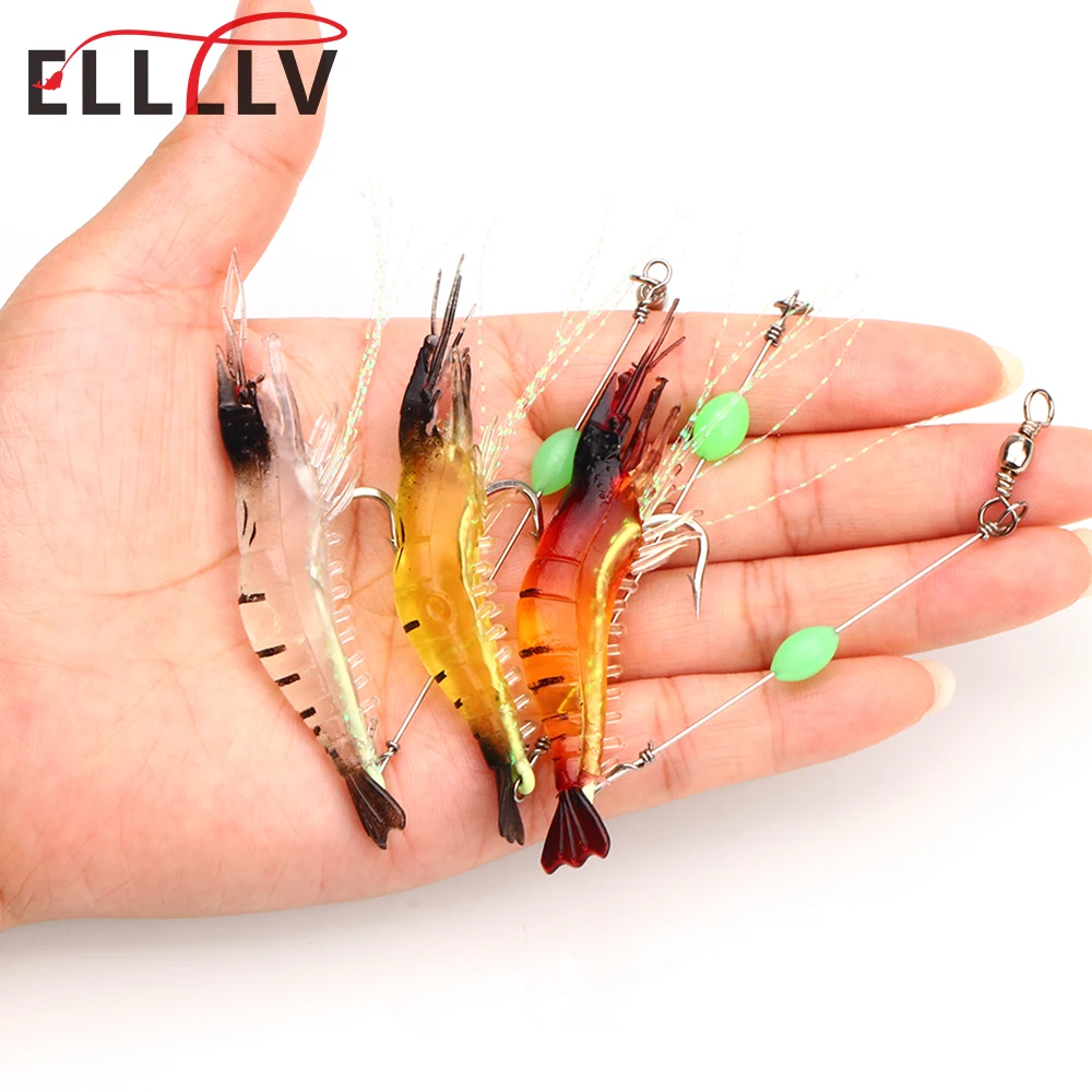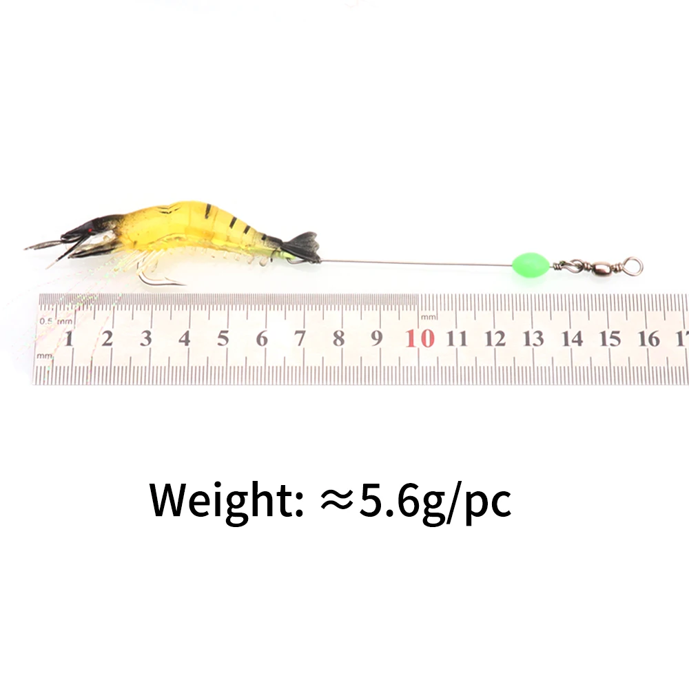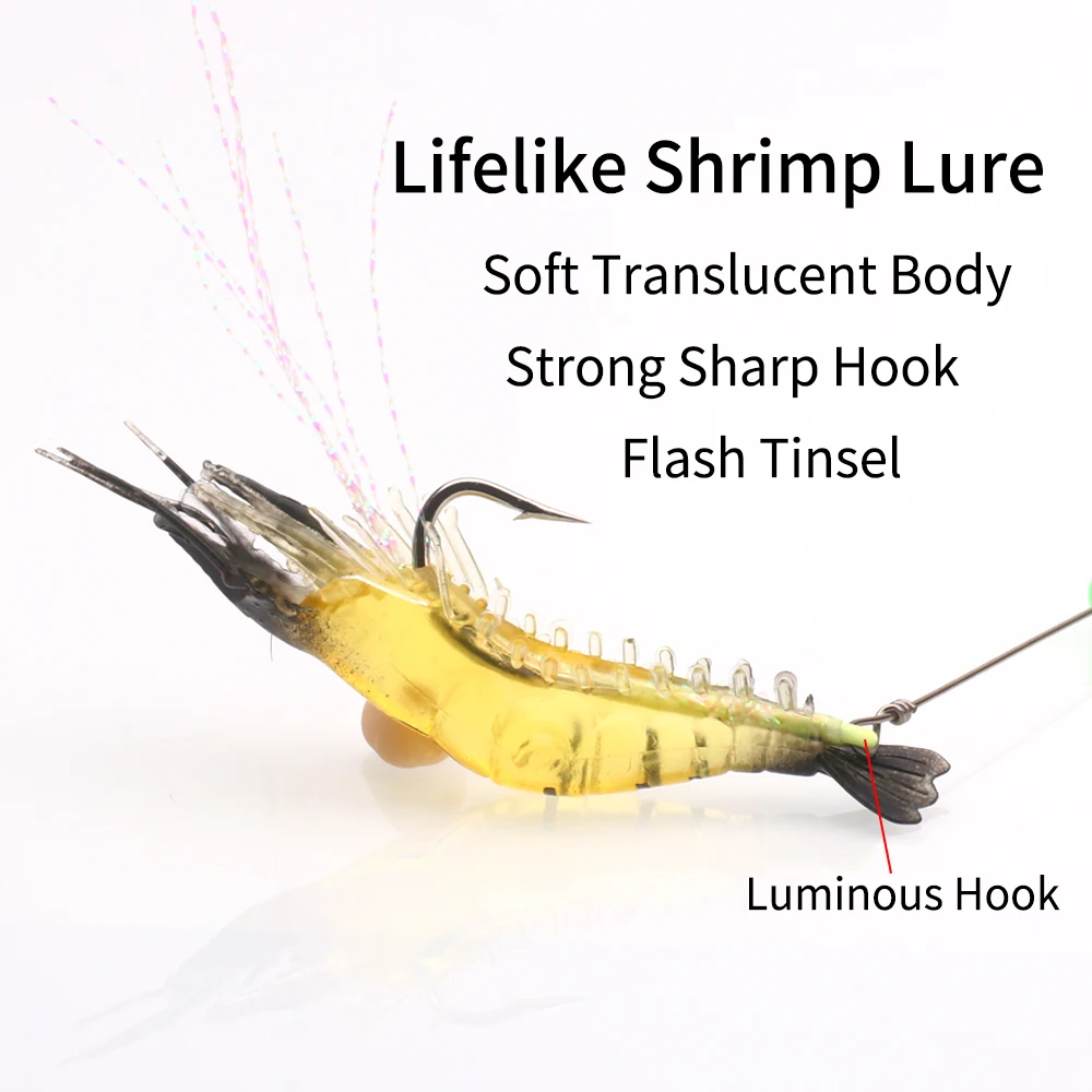 Ellllv Señuelo de Camarón Suave, Anzuelo Brillante con Cordón Antimordedura, Rodamiento de Cuentas Luminosas Giratorias, Cebo Realista para Pesca