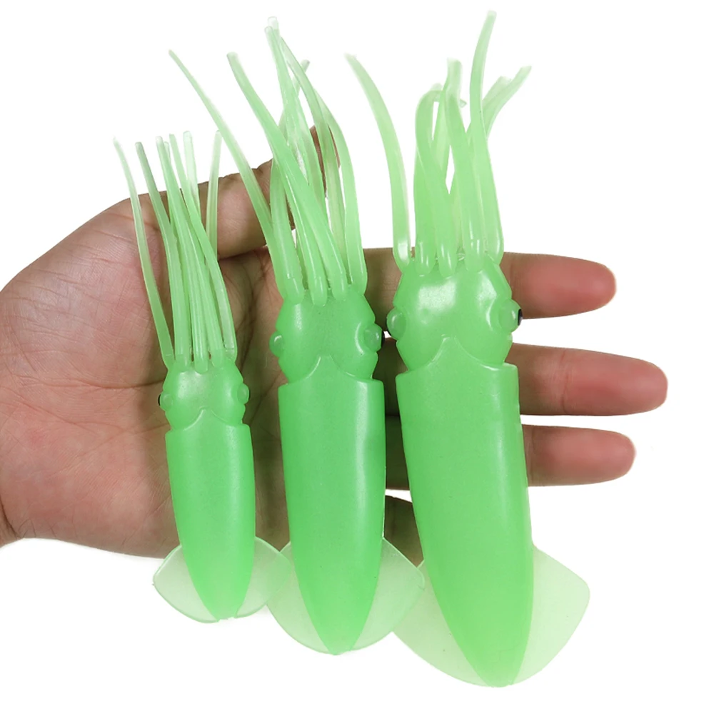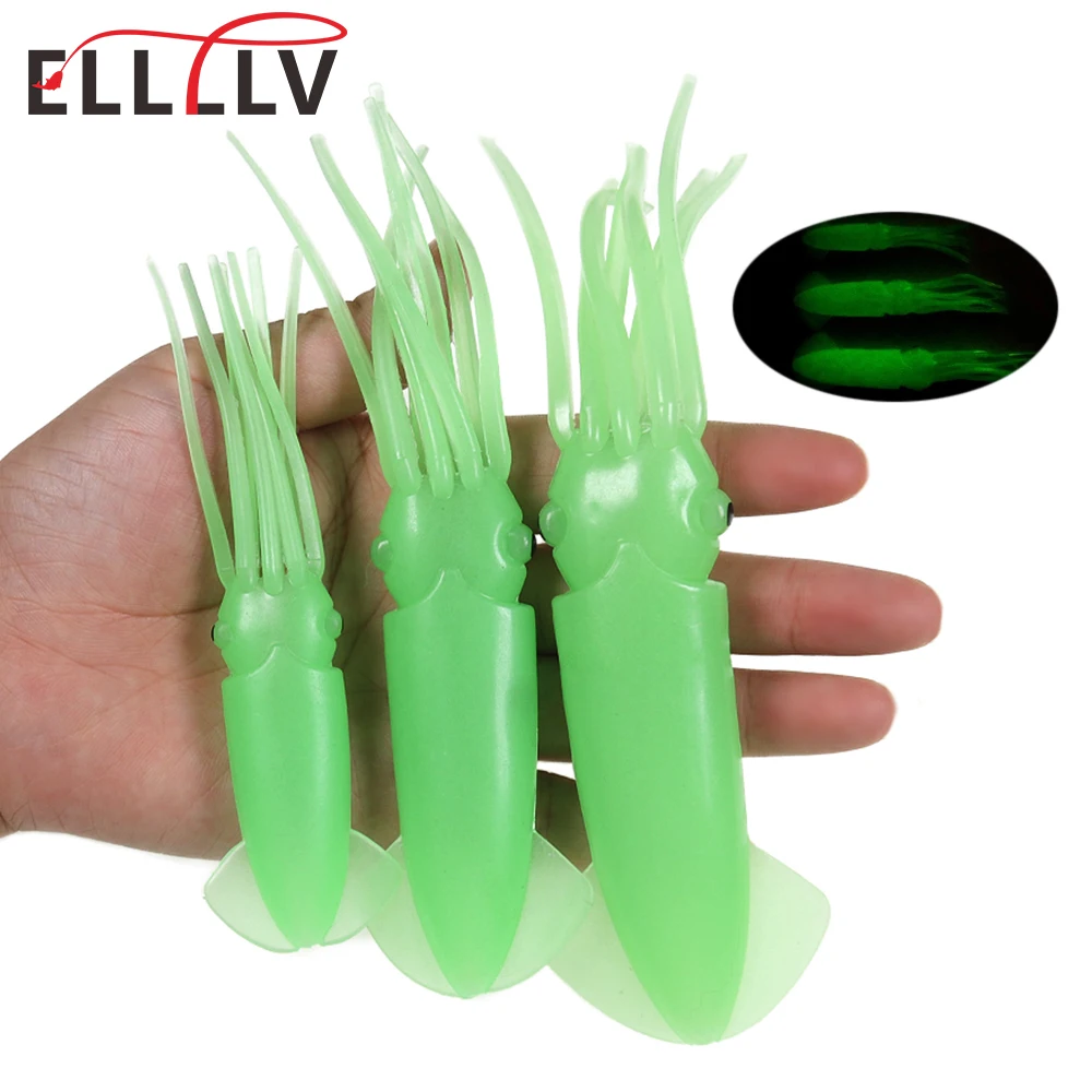 Ellllv-Señuelo de pesca de agua salada para pesca en agua salada, calamar suave, luminoso, verde, 3/14/17cm, 12/14/17cm, jigs de pulpo, Marlin, mero, atún