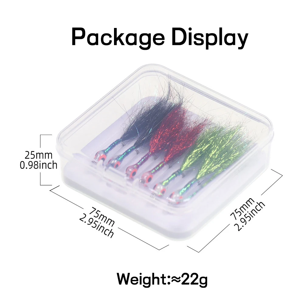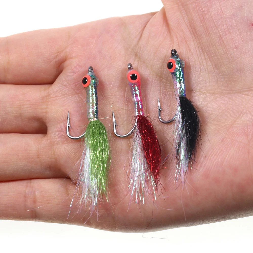 Ellllv 6 unids/caja 4 #6 #8 # mezcla de colores hielo doblaje Minnow agua salada moscas con anzuelo de acero inoxidable señuelo de pesca cebo para lubina