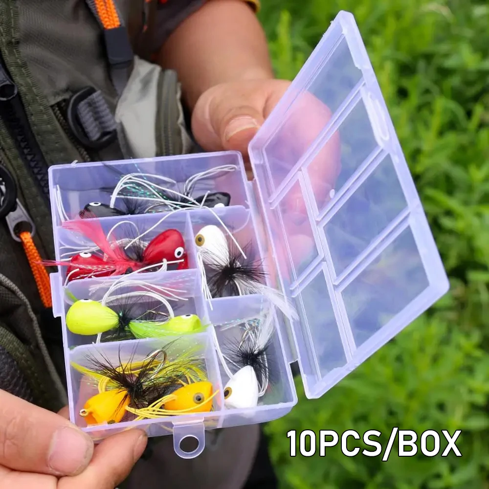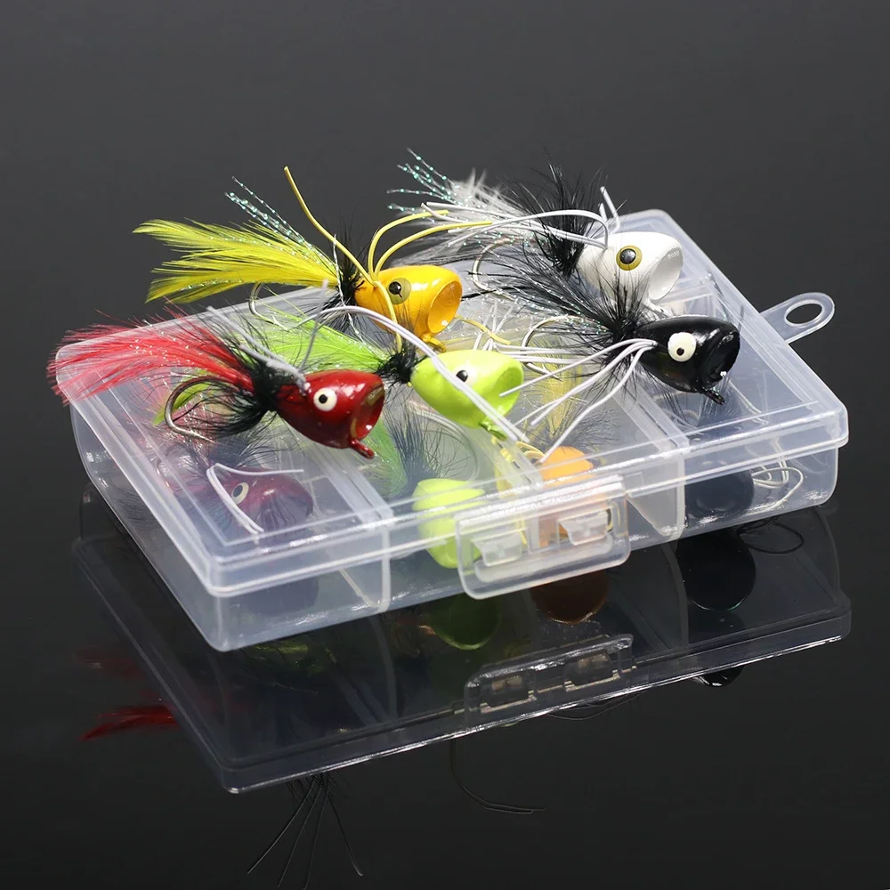 Ellllv 10 unids/caja cabezas de espuma Popper señuelo de pesca con mosca agua salada Topwater cebo flotante Poppers Jig para trucha lubina Walleye Carppie
