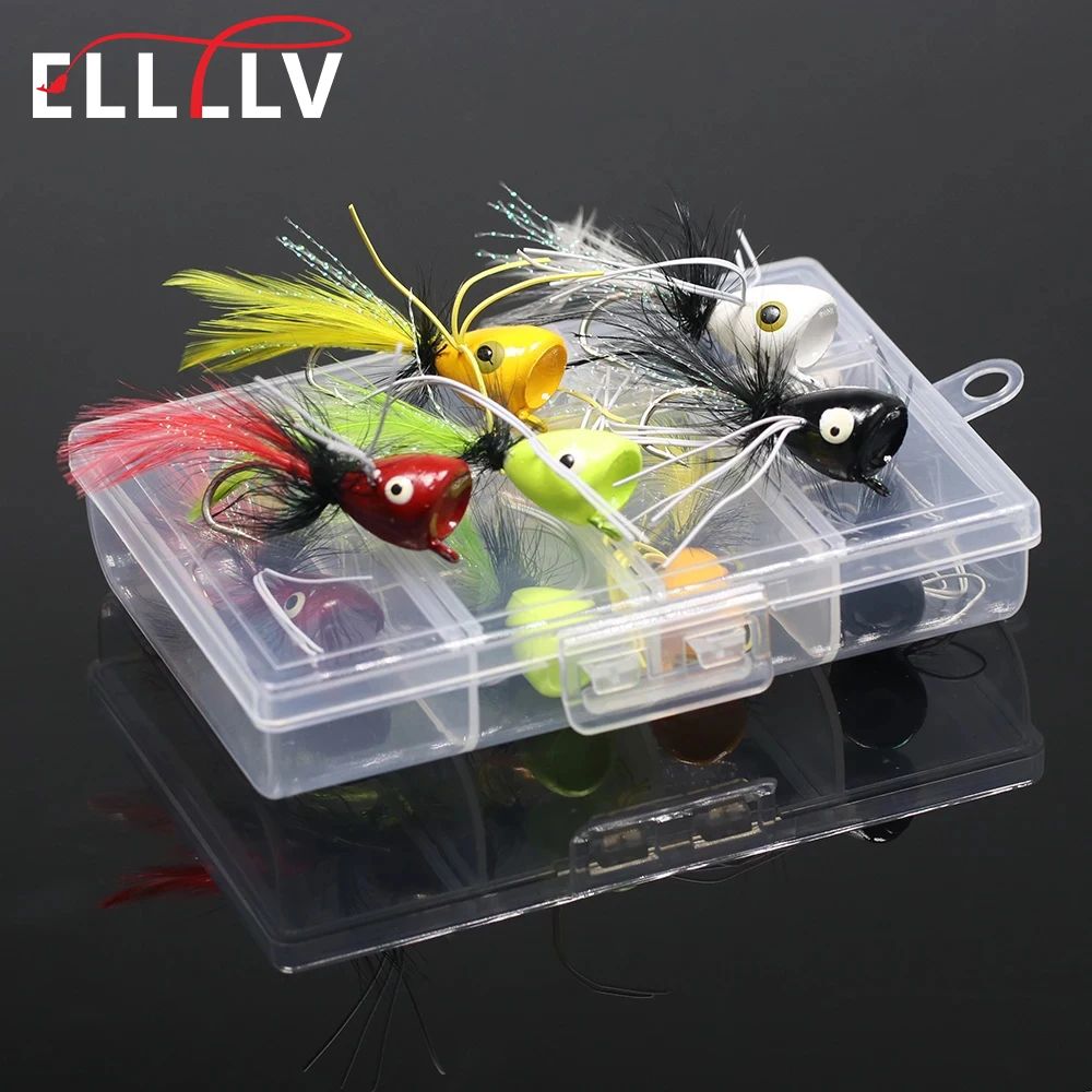 Ellllv 10 unids/caja cabezas de espuma Popper señuelo de pesca con mosca agua salada Topwater cebo flotante Poppers Jig para trucha lubina Walleye Carppie