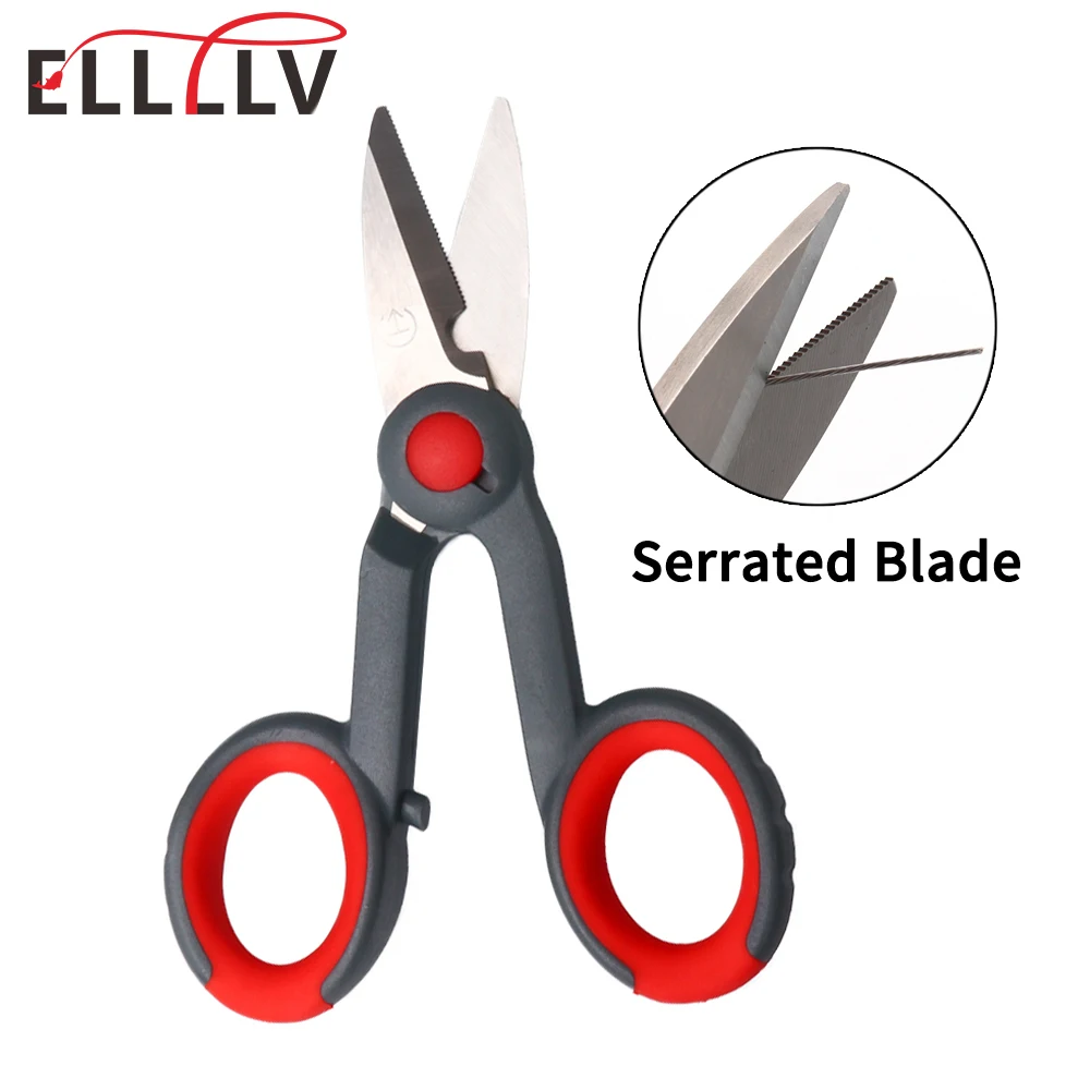 Ellllv, tijera de hoja dentada de acero inoxidable para pesca, tijeras portátiles para electricista, alicates, herramienta, línea trenzada de PE, cortador de alambre de acero