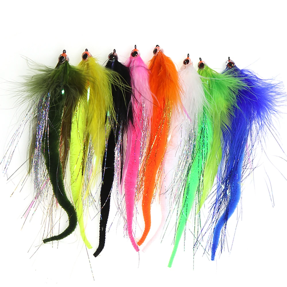 1PC/2PCS 8 colores Dragontail Fly para lubina o Muskie Señuelos de pesca juego grande cebo de agua salada pesca Streamer mosca 2/0 gancho