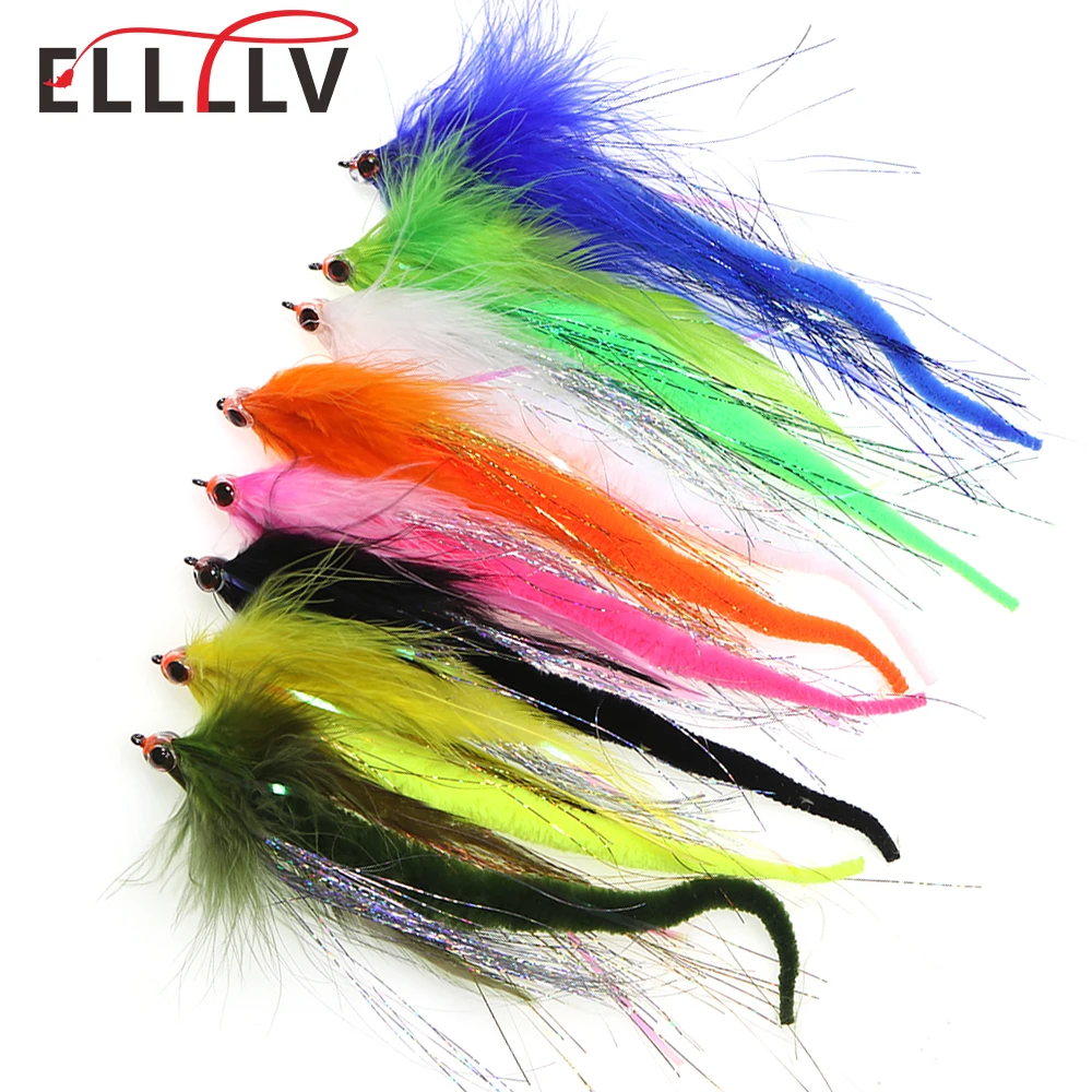 1PC/2PCS 8 colores Dragontail Fly para lubina o Muskie Señuelos de pesca juego grande cebo de agua salada pesca Streamer mosca 2/0 gancho