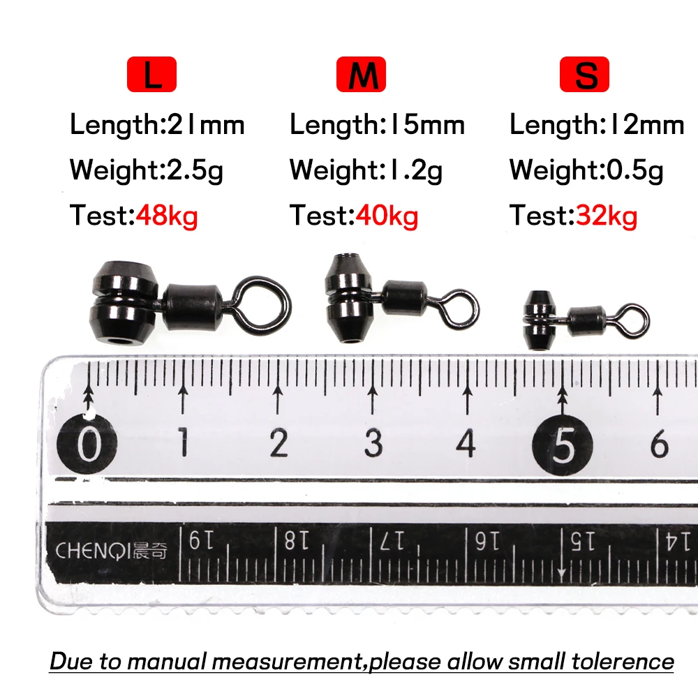 Elllv 10PCS Giratorios de línea transversal de alta resistencia 360° Rodamiento giratorio giratorio aparejos de pesca de agua salada accesorio conector S/M/L