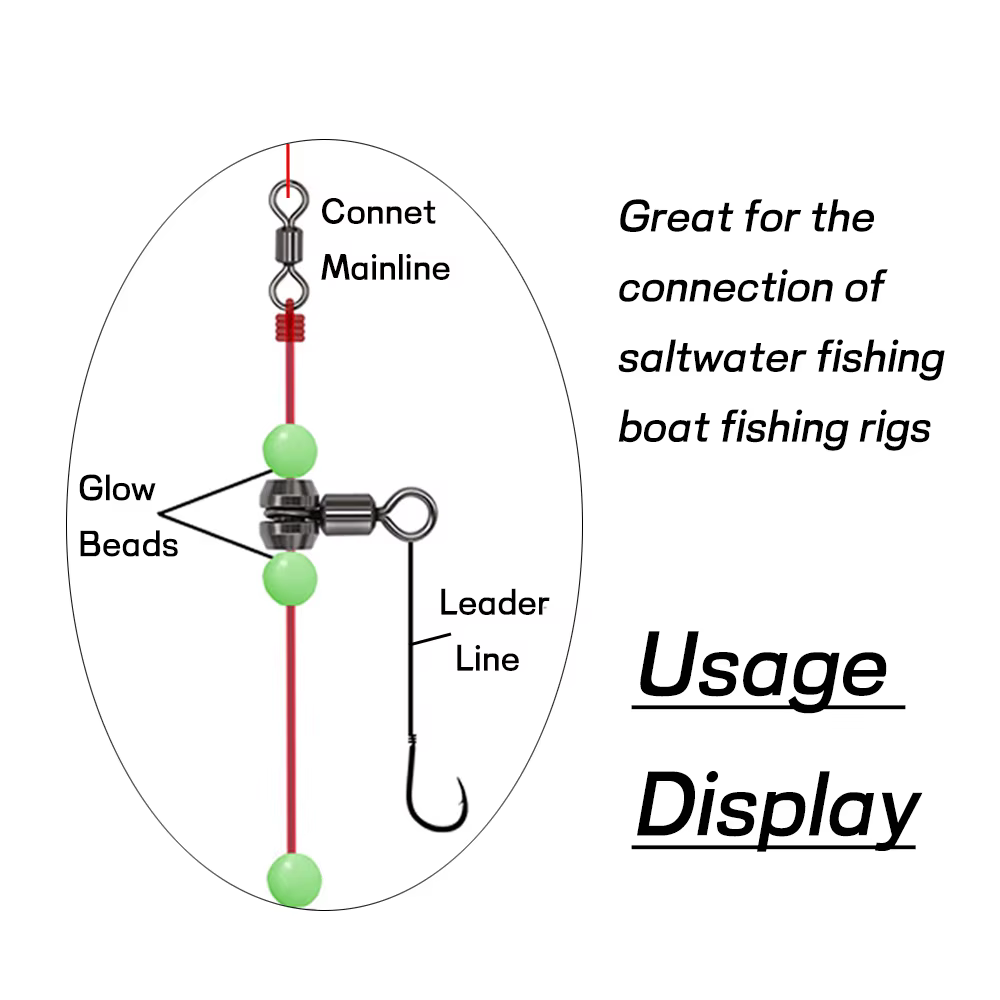 - Especialmente ideal para la conexión de aparejos de pesca en el mar/pesca en barco.Se utilizan dos o más juntos para separar eficazmente la línea líder sin enredos.