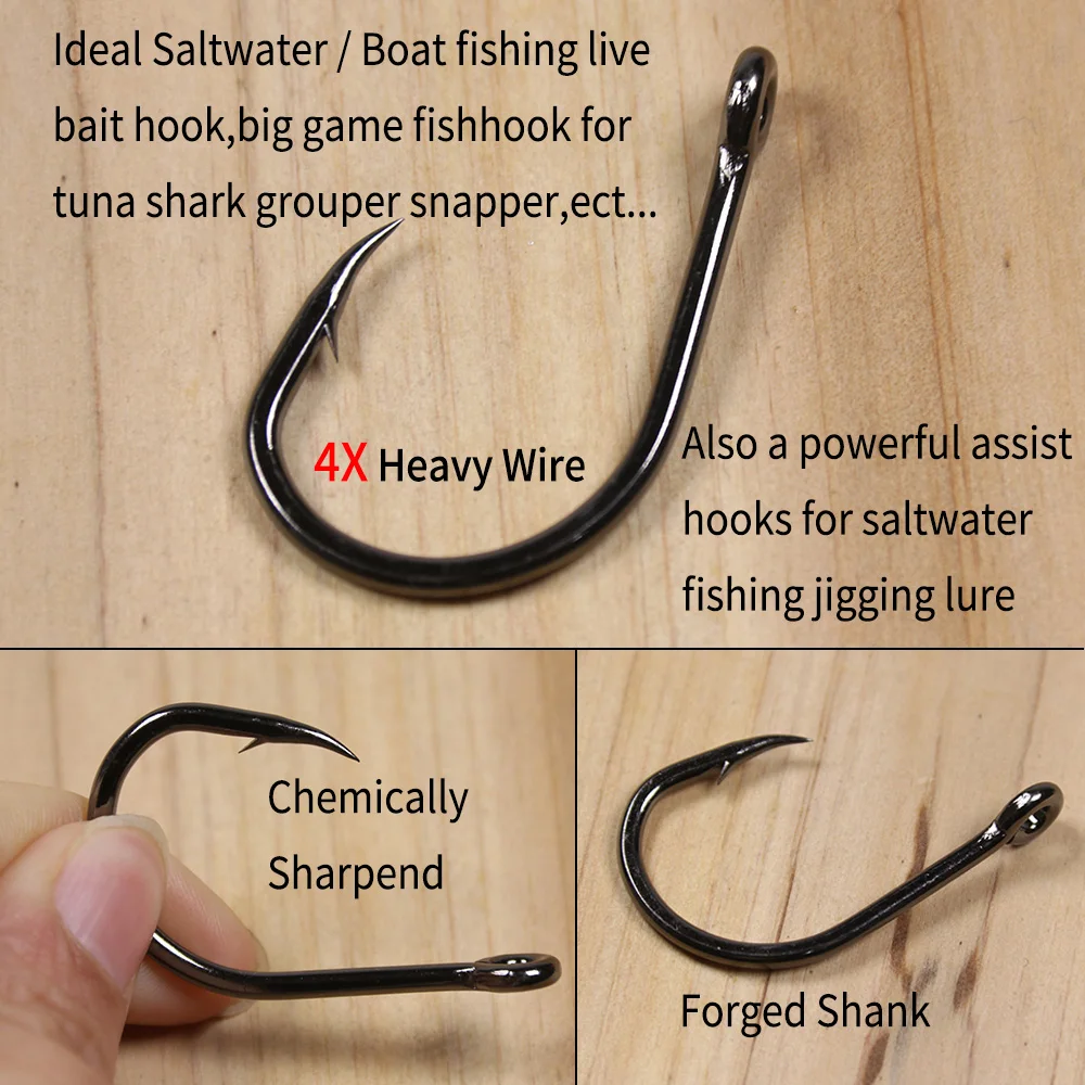 Elllv 100 Uds 4X anzuelo fuerte para cebo vivo agua salada pesca en barco de aguas profundas anzuelo de plantilla única para atono Snapper cuper Marlin