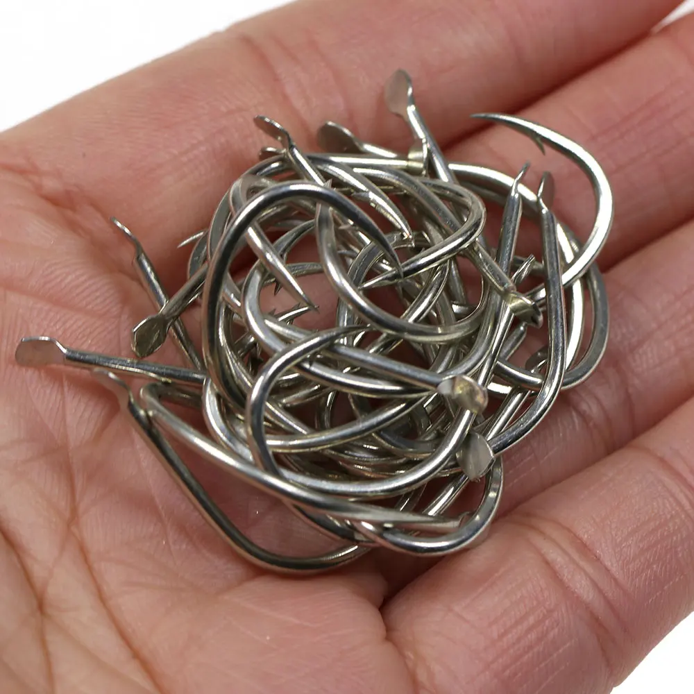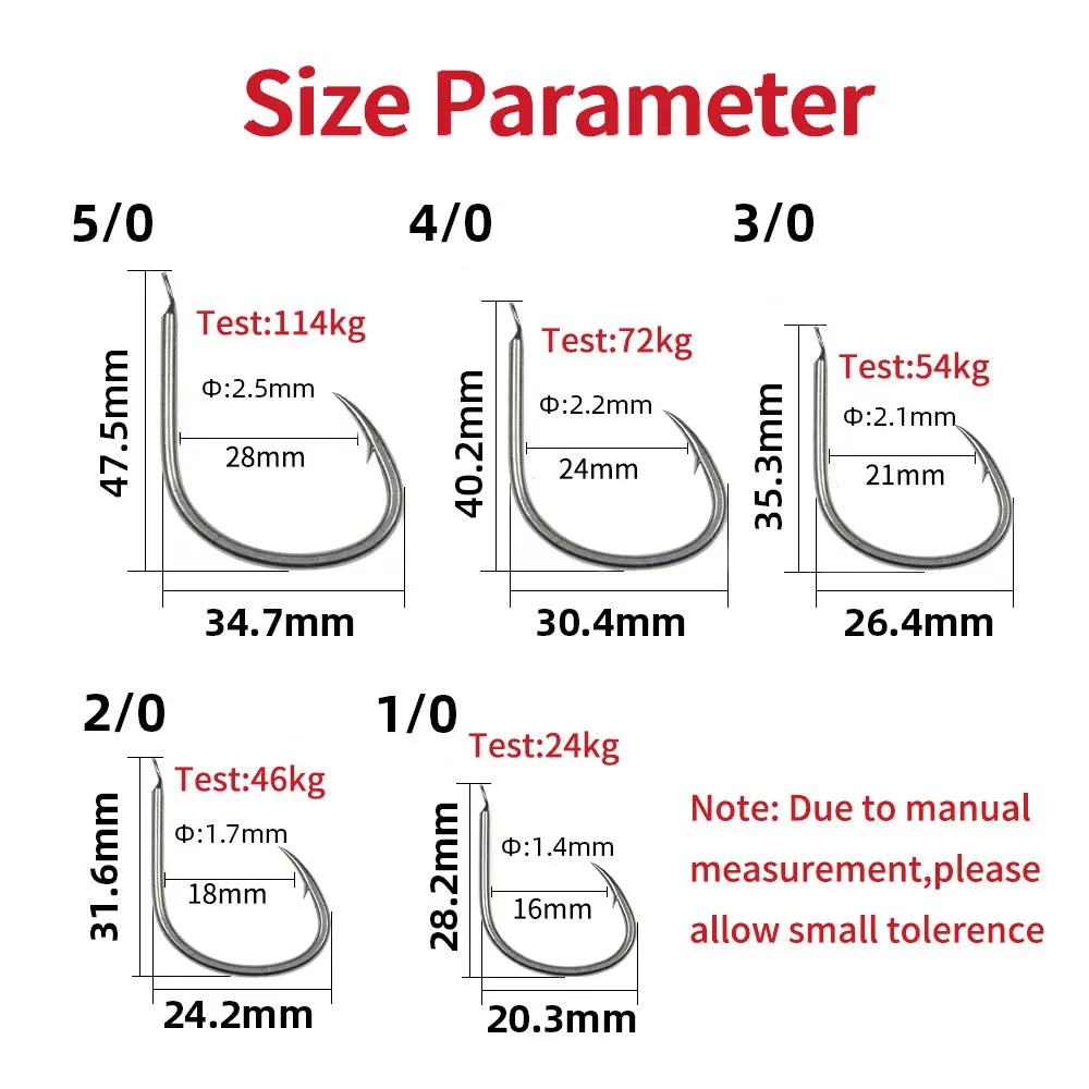 Elllv 100 Uds. Anzuelos de pesca de Lucio Mar de estaño brillante, anzuelo de ayuda de Jigging lento de agua salada, resistencia a la corrsión 1/0 2/0 3/0 4/0 5/0