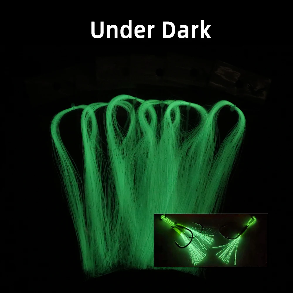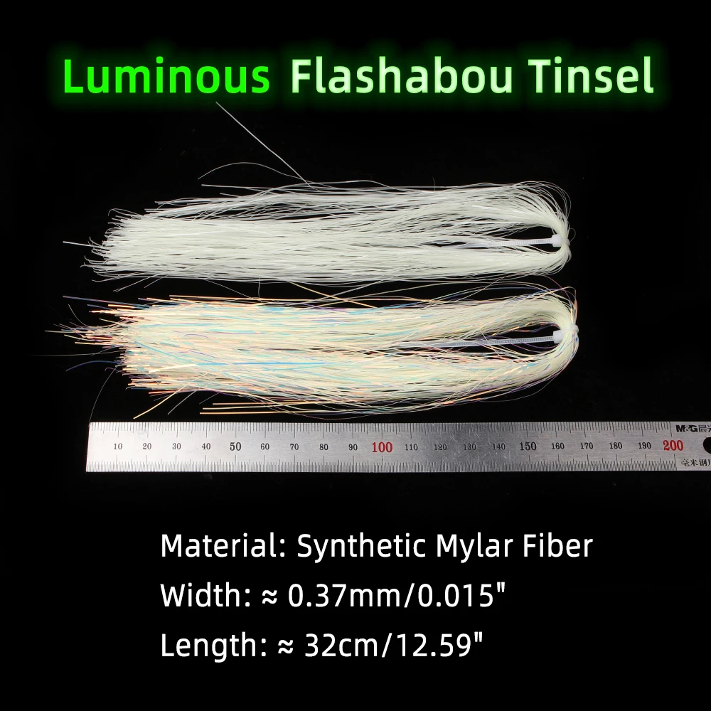 Elllv 2 packs 0.37mm Luminous Flashabou Tinsel Glow Binding Material for Saltwater Fishing Assist Hook Jigs Lure Streamer Flies