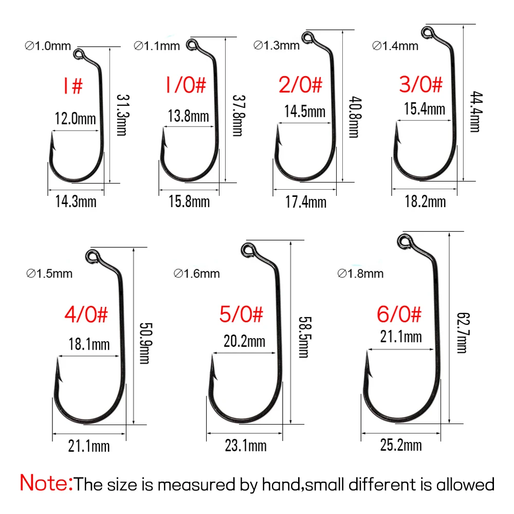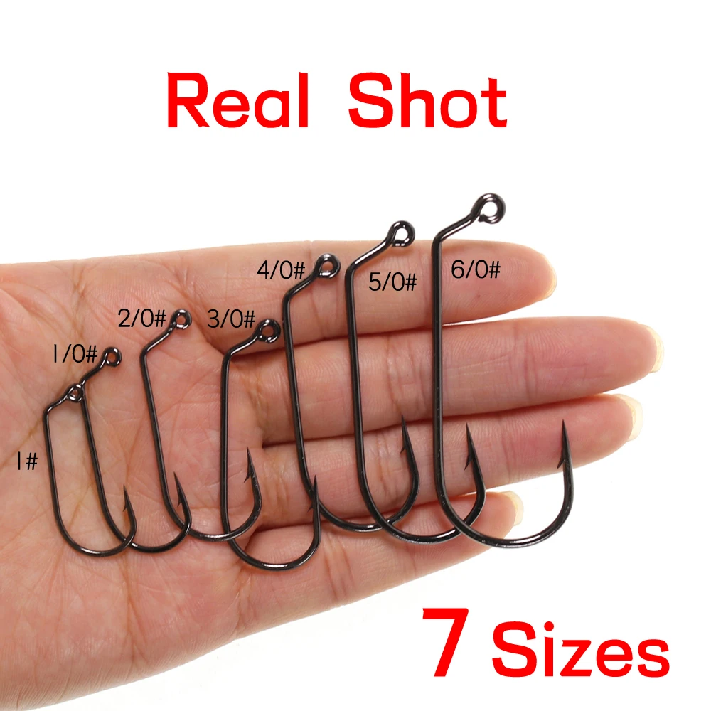 20 piezas 1 # - 6/0 # tamaños grandes gancho de plantilla de 60 grados de acero de alto carbono grueso agua salada ganchos de gusano suave de agua dulce