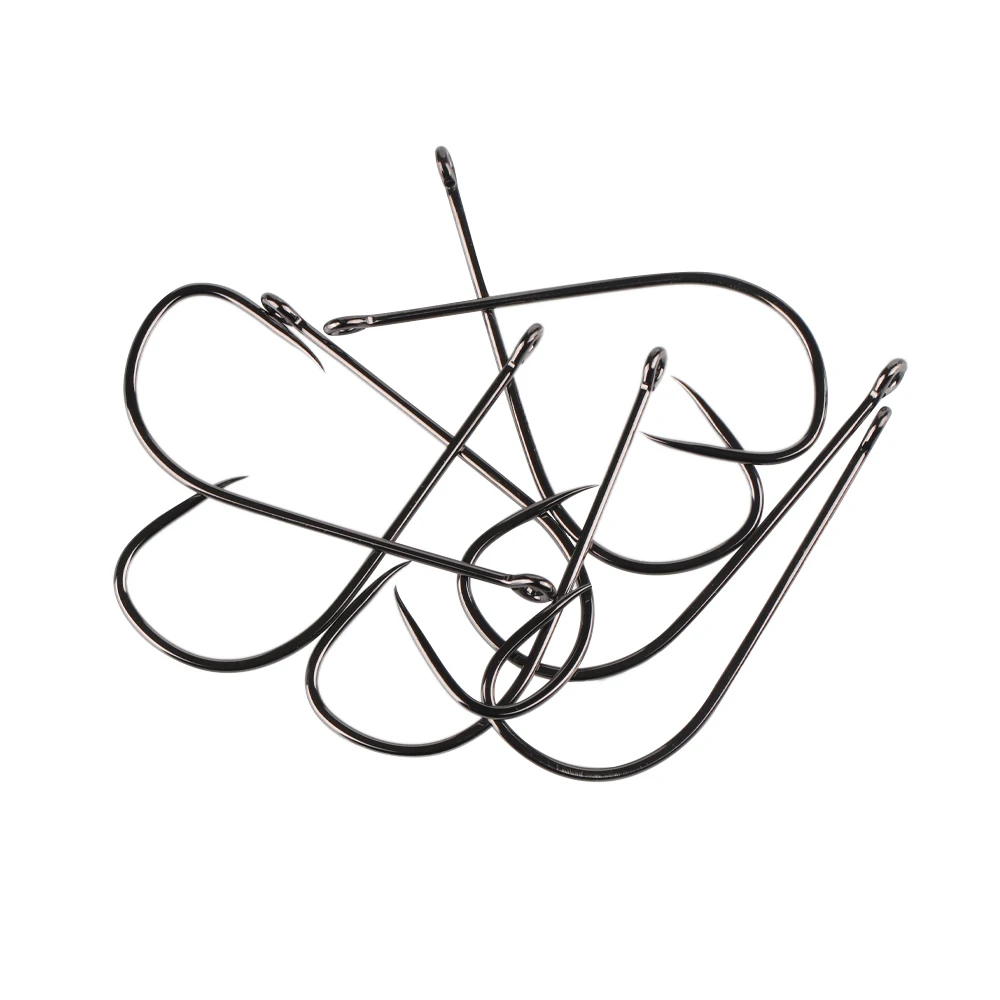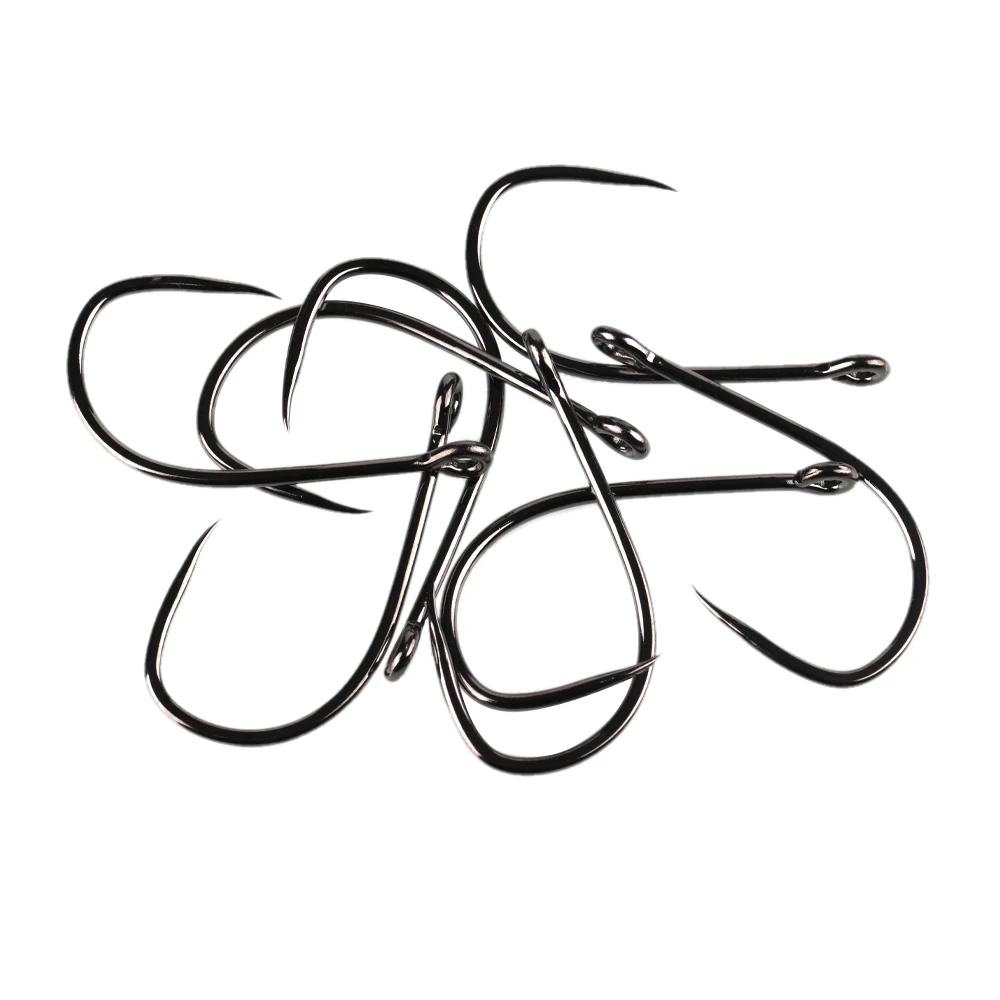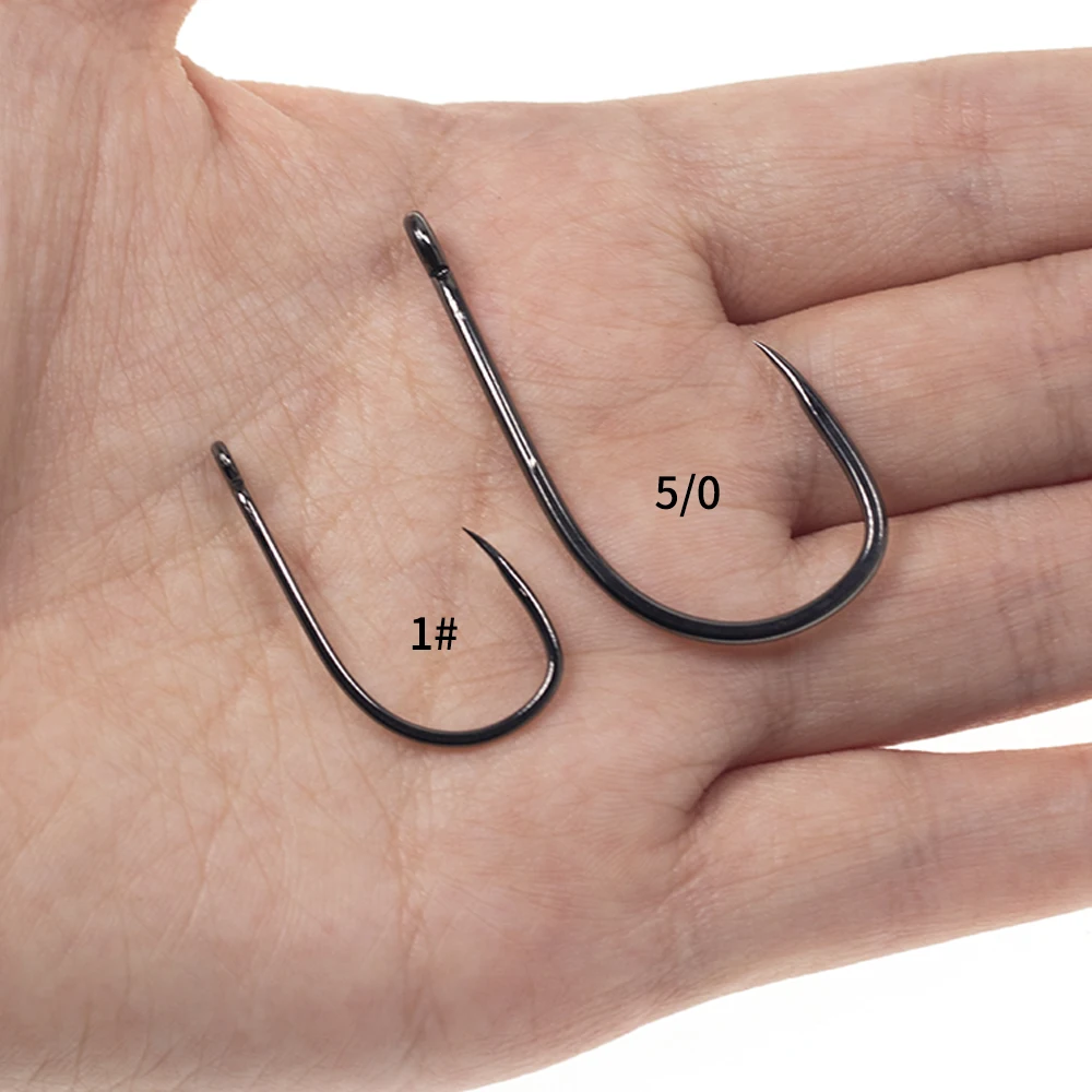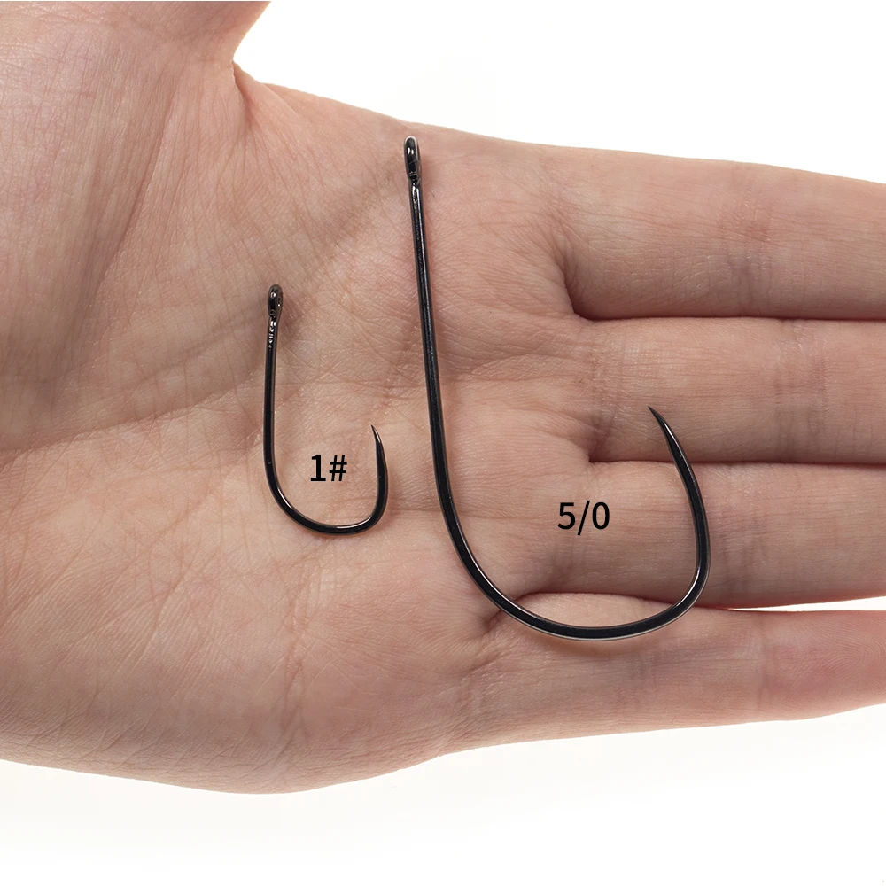 Elllv 20 piezas 1# - Gancho de mosca para serpentín de agua salada sin púas 5/0, anzuelo de pesca de juego grande sin púas de níquel negro de acero rico en carbono