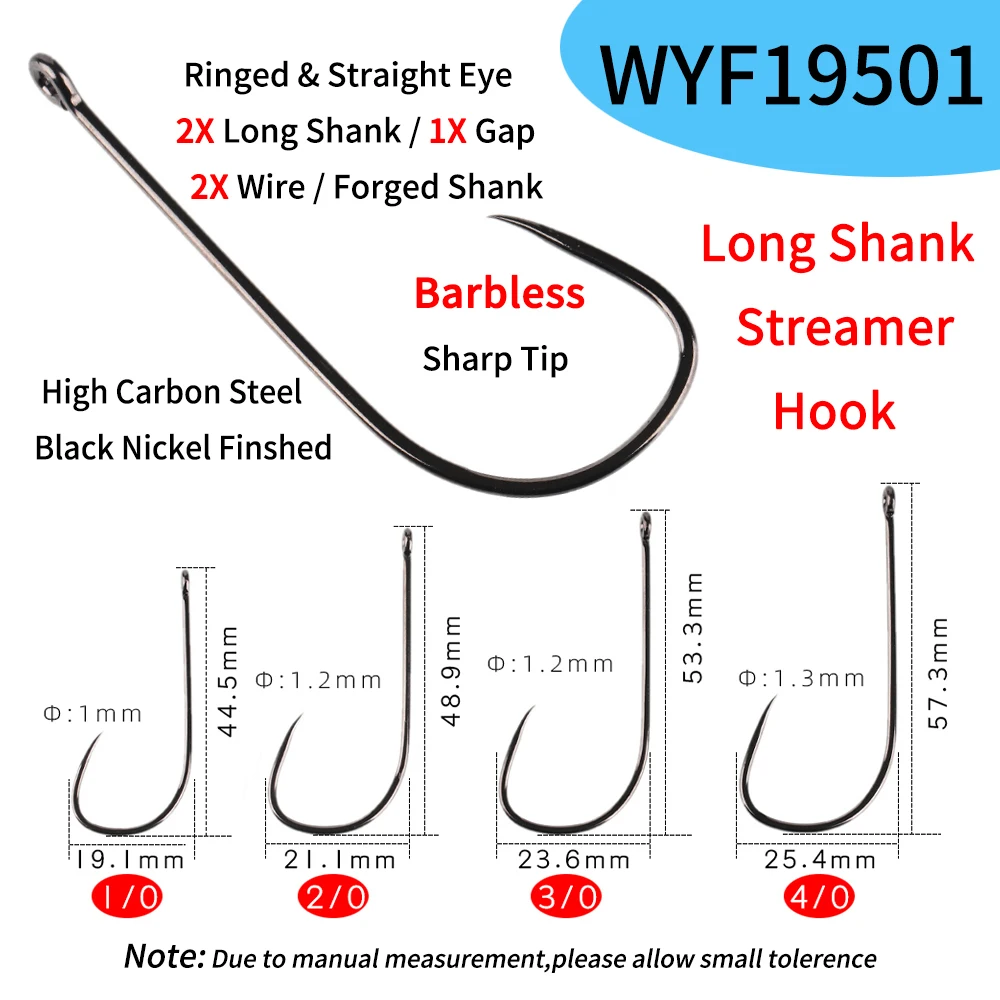 Características: acero con alto contenido de carbono, acabado en níquel negro, vástago largo 2X, sin púas, punto en línea, ojo recto, resistencia 2X, espacio ancho 2X, ultra afilado, forjado