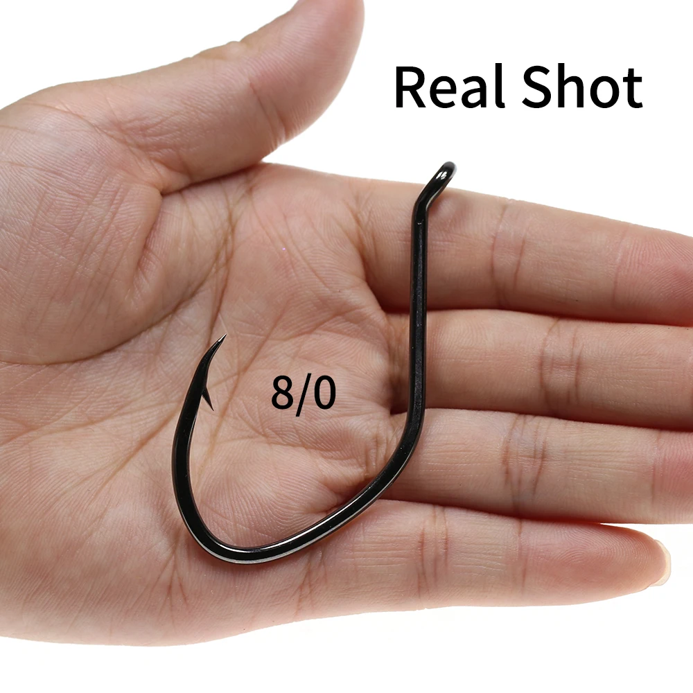 20 piezas pesca en agua salada gancho de púas desplazado de acero rico en carbono forma de V anzuelo fuerte de bagre 8 6 1/0 2/0 3/0