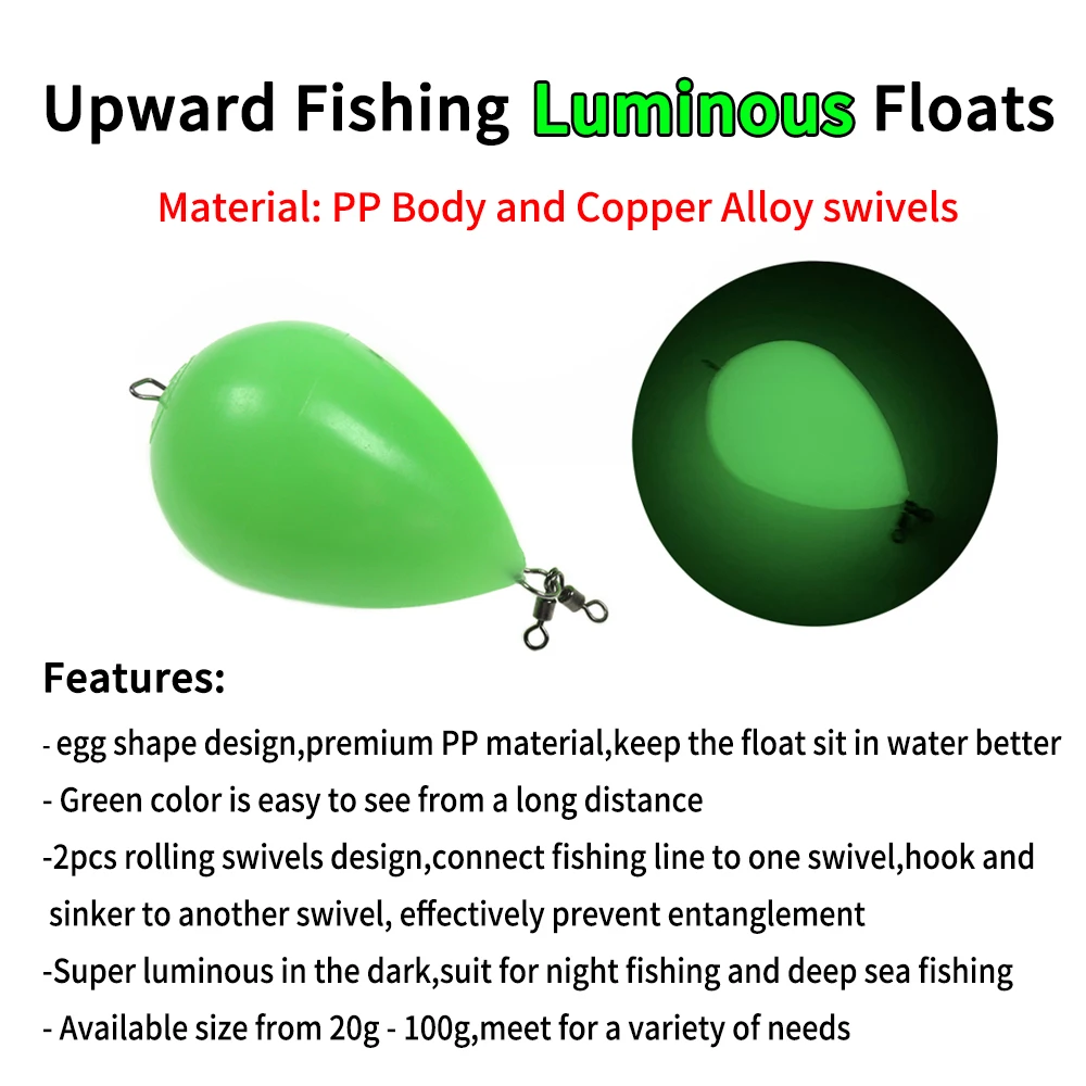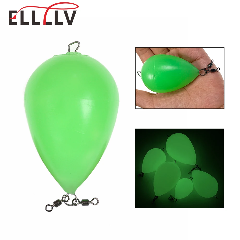 Elllv 20g-100g flotador verde luminoso forma de huevo Bobber lanzador de lanzamiento de larga distancia para pesca nocturna pesca en aguas profundas