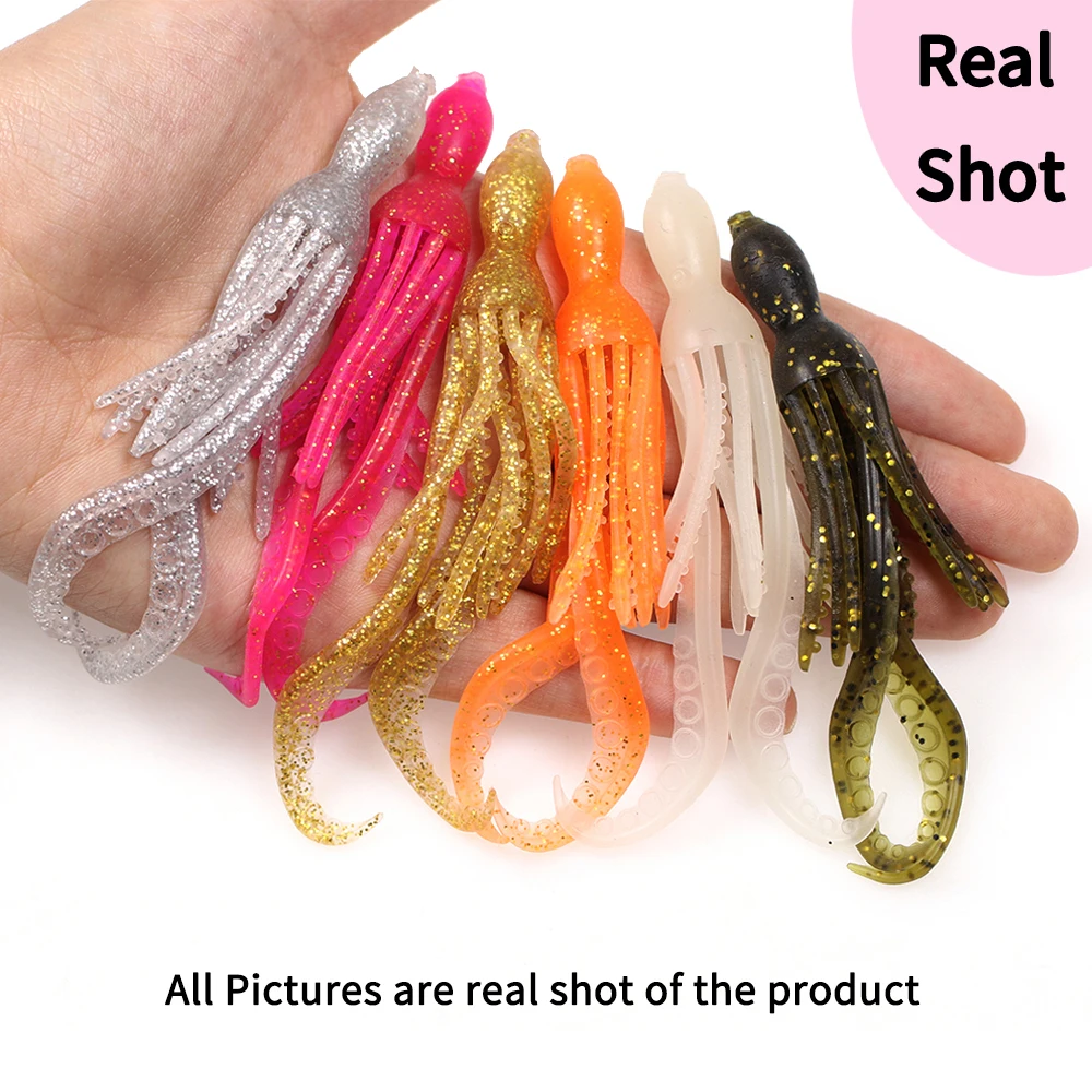 ELLLV 5 uds 10cm/4g pulpo Calamar cebo Lumo Fluo agua salada pargo pesca señuelo suave TPR Material Kabura Pesca Wobbler aparejos de pesca