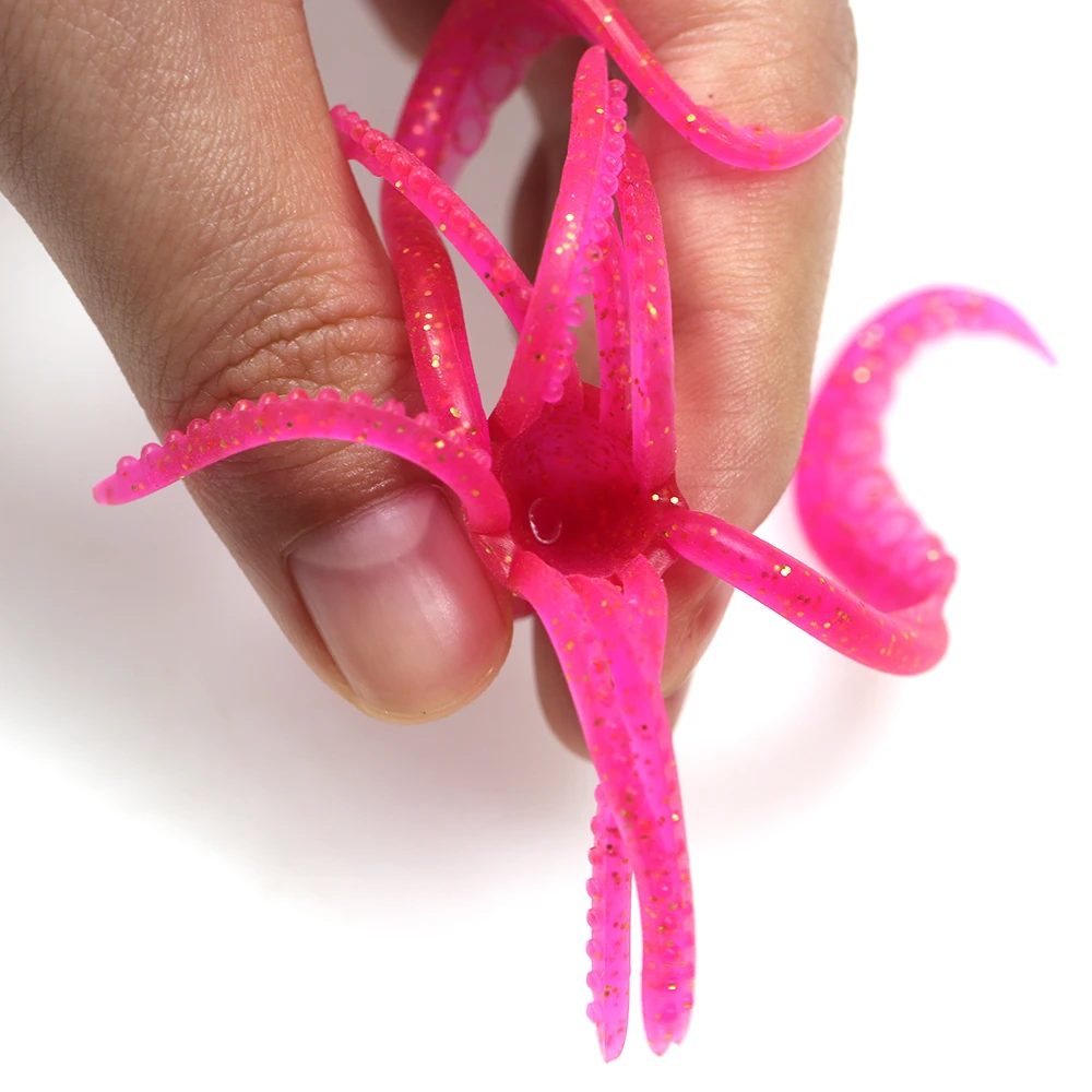Señuelo Bionic Octopus, material TPR, súper suave y elástico, más respetuoso con el medio ambiente.Las faldas flexibles permiten que el señuelo se mueva de forma natural y baile en el agua, los colores brillantes y fluorescentes serán más atractivos para apuntar a los peces.Ideal para la pesca de mero con pargo de agua salada.