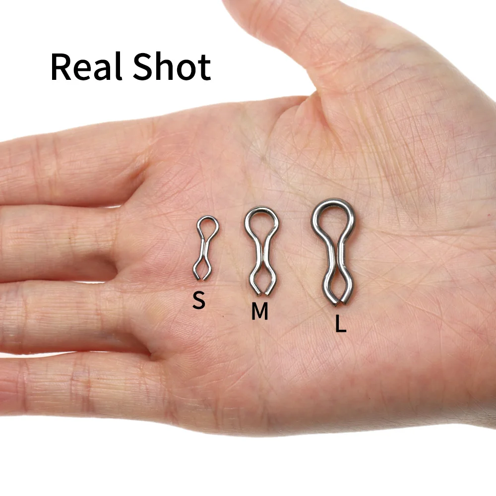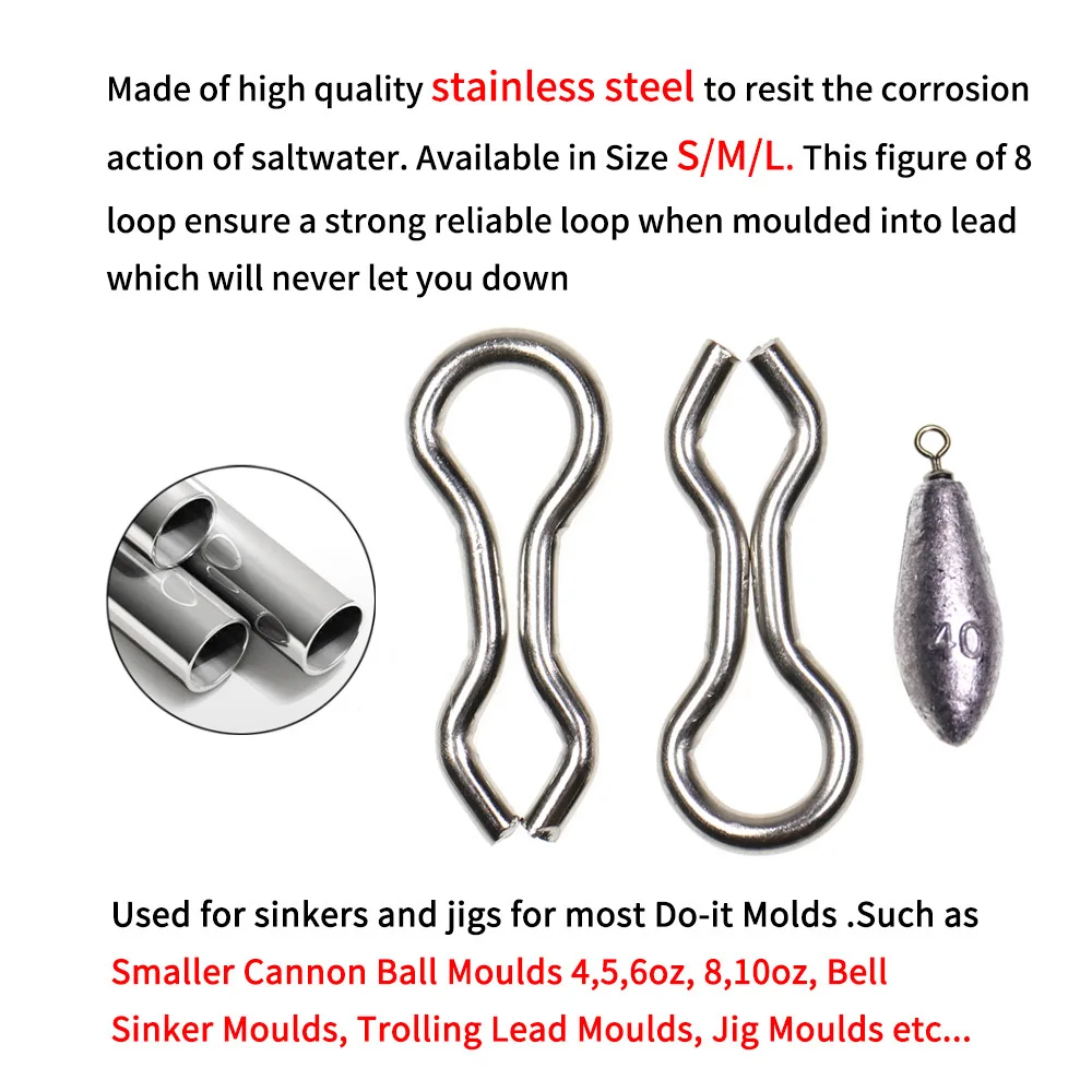 Elllv 50 Uds. Bucles de molde de acero inoxidable DO-IT, plomos y plantillas de pesca anticorsión, señuelos moldeados, ojales de alambre, anillos de exhibición S M L