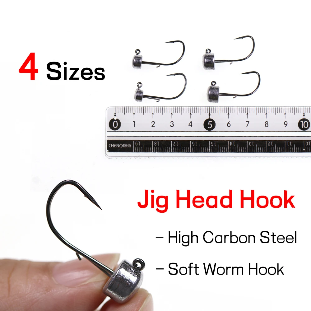 Elllv 50 Uds 1,5g/2,5g/3,5g/4,5g forma cilíndrica anzuelo con cabeza plomada Clip colgante gusano blando cebo señuelo Jigging gancho para perca de lubina
