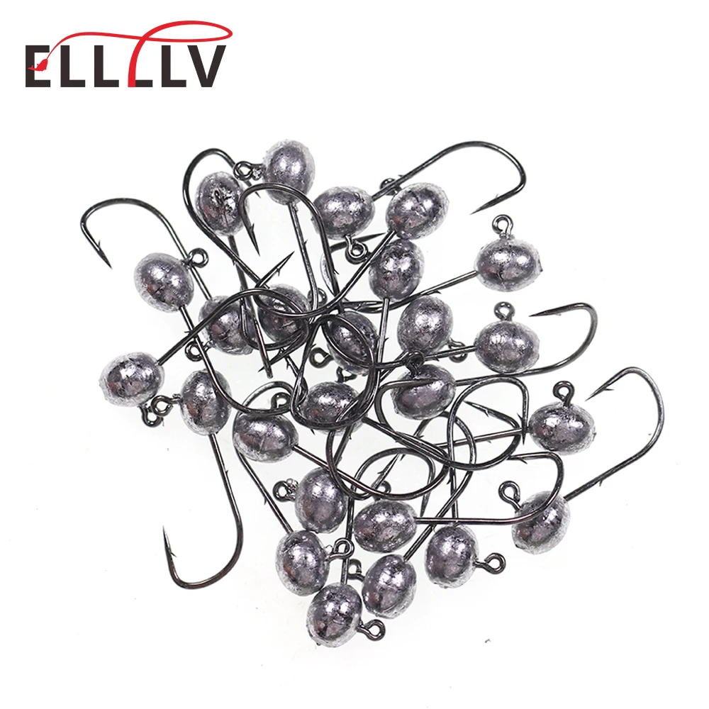 Elllv 50 Uds. 2g/3g/4g/5g forma ovalada gancho de cabeza Jig Baitholder diseño cebo de gusano blando señuelo Jigging gancho para perca de lubina de mar