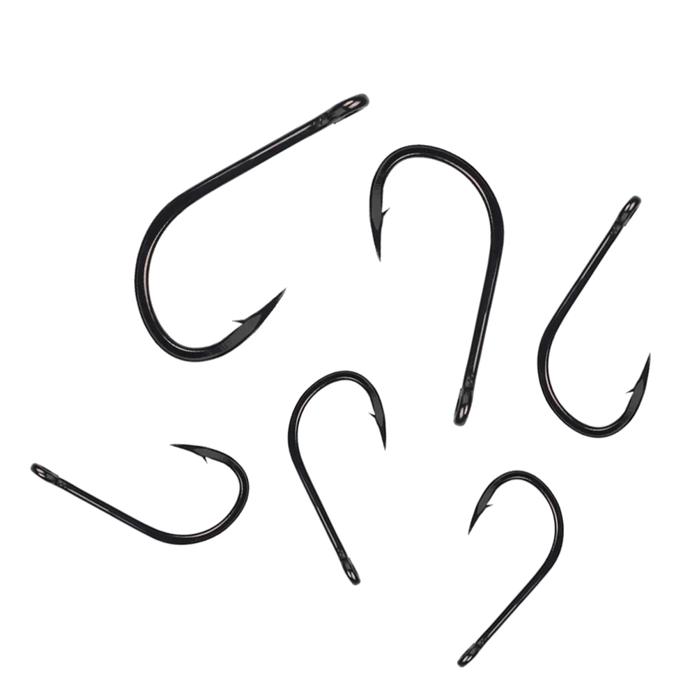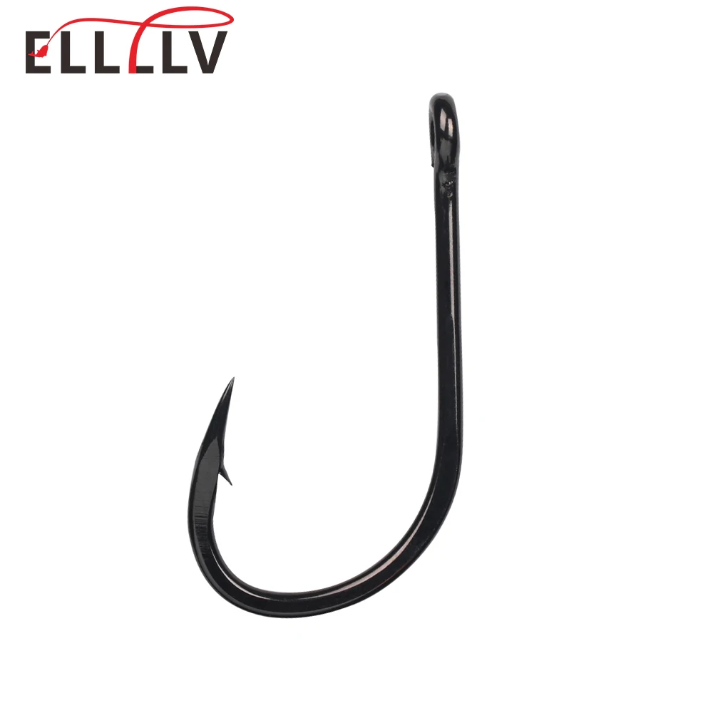 Elllv 2/0 - 8/0 Anzuelo de cebo compensado de alta resistencia 4X Anzuelos de pesca de agua salada de níquel negro fuerte para pesca en barco de orilla de mar