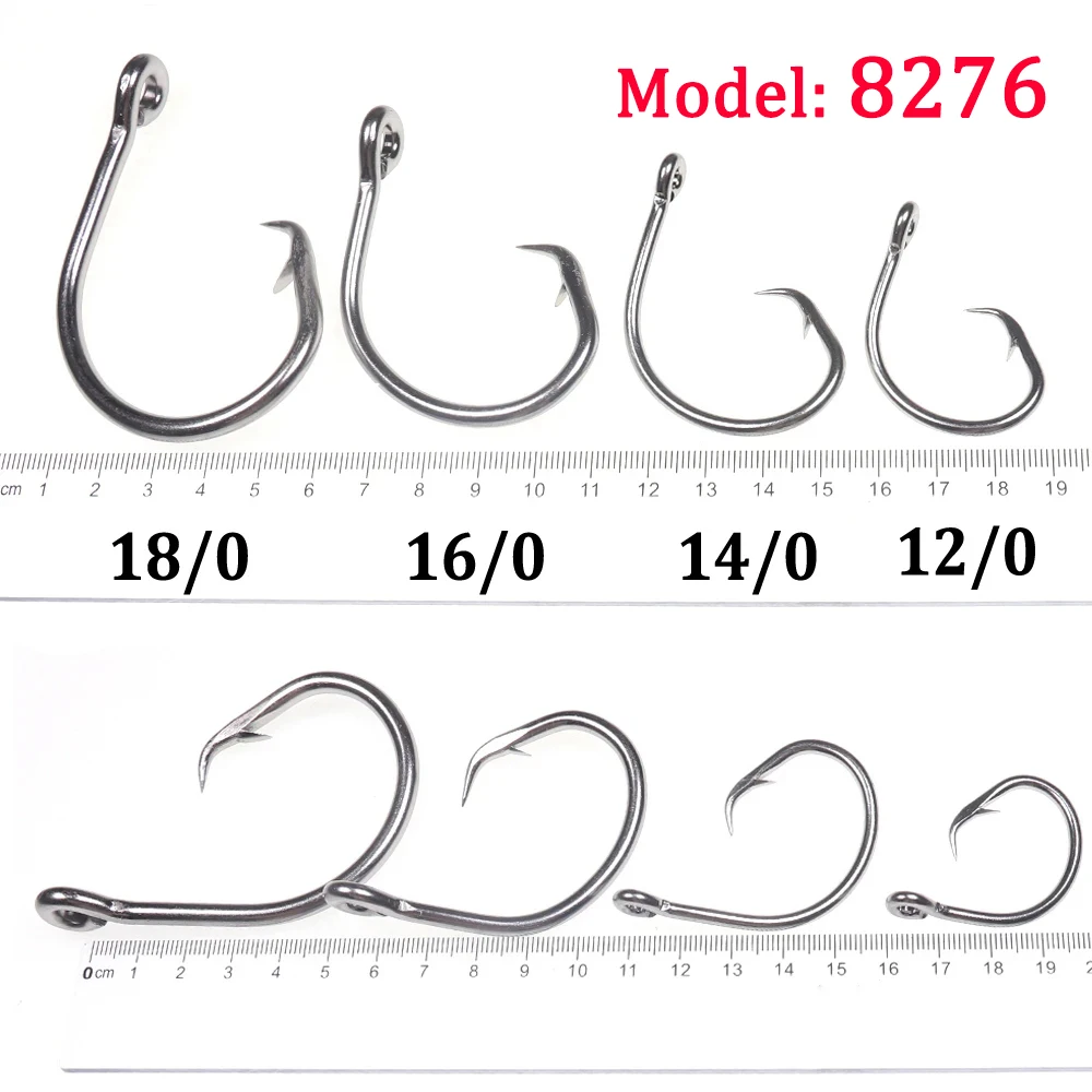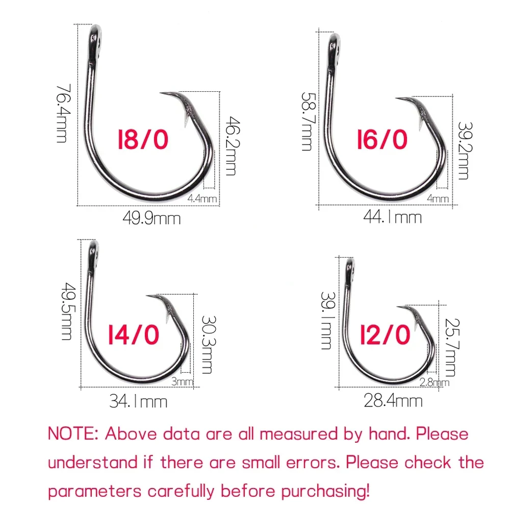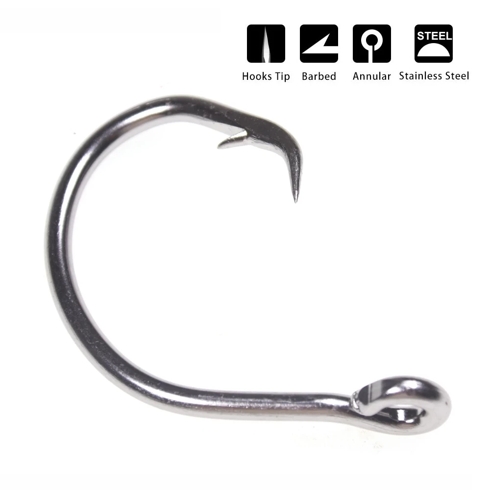 Elllv 6/0 - 18/0 Pesca de agua salada Gancho circular de acero inoxidable Anzuelo de cebo de juego grande para pesca de curricán de tiburón atún de aguas profundas