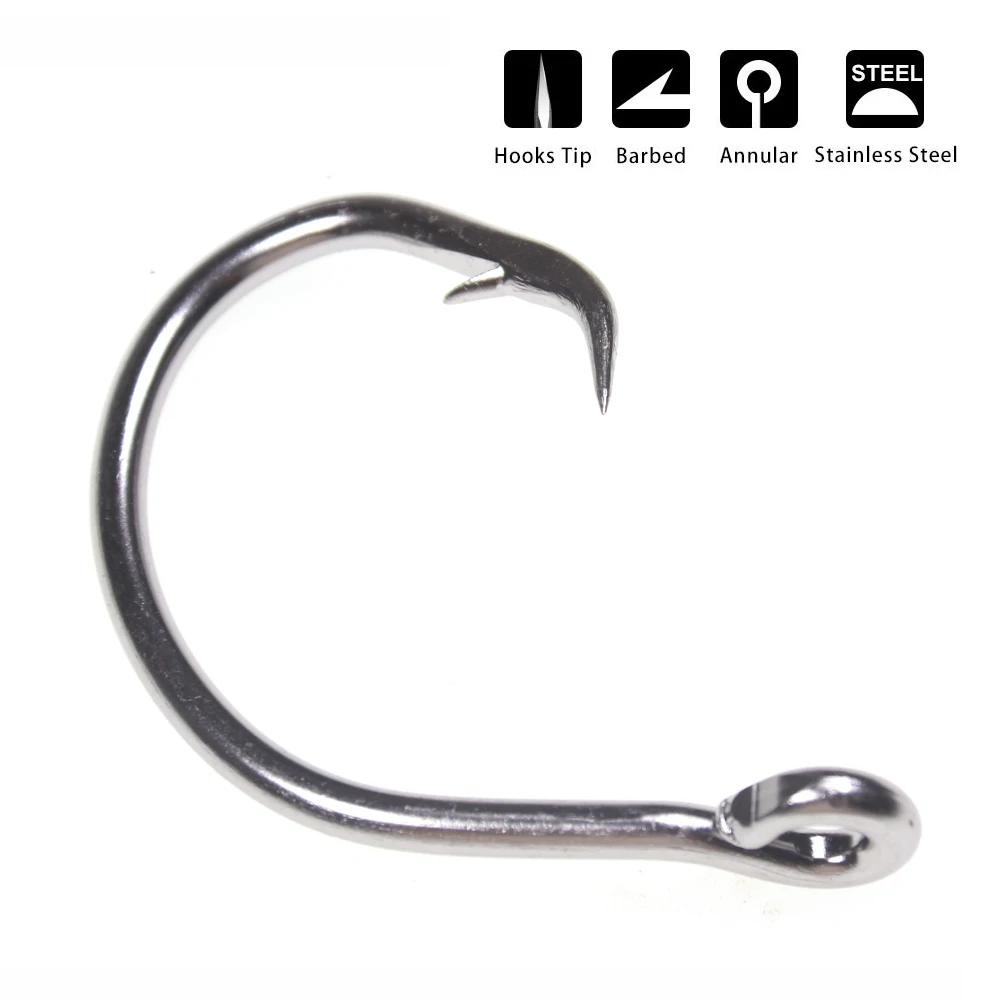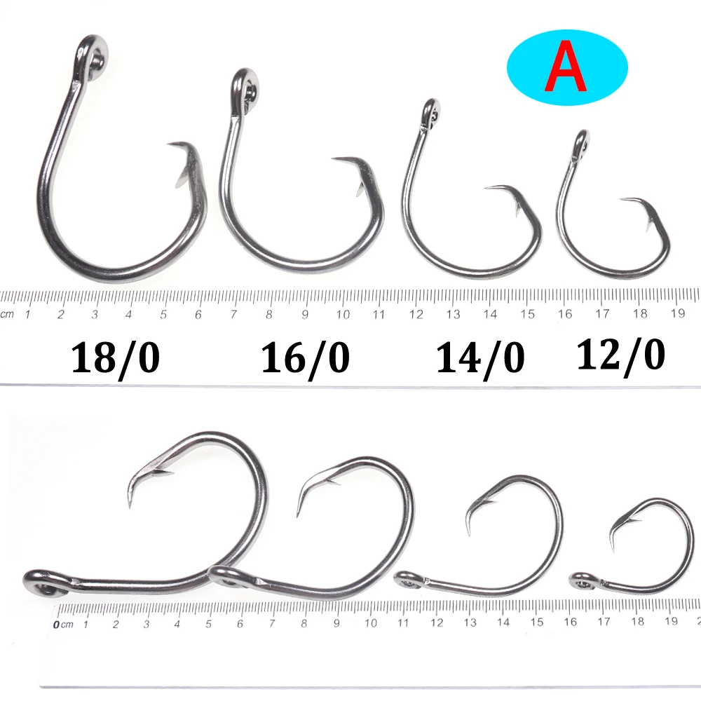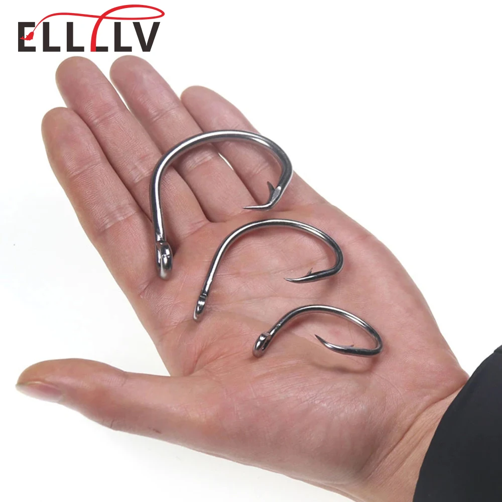 Elllv 10/0 - 18/0 círculo de acero inoxidable anzuelo de compensación de pesca de agua salada de alta resistencia para pesca con curricán de mar y tiburón de atún