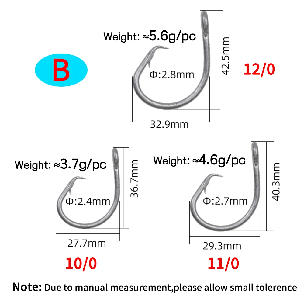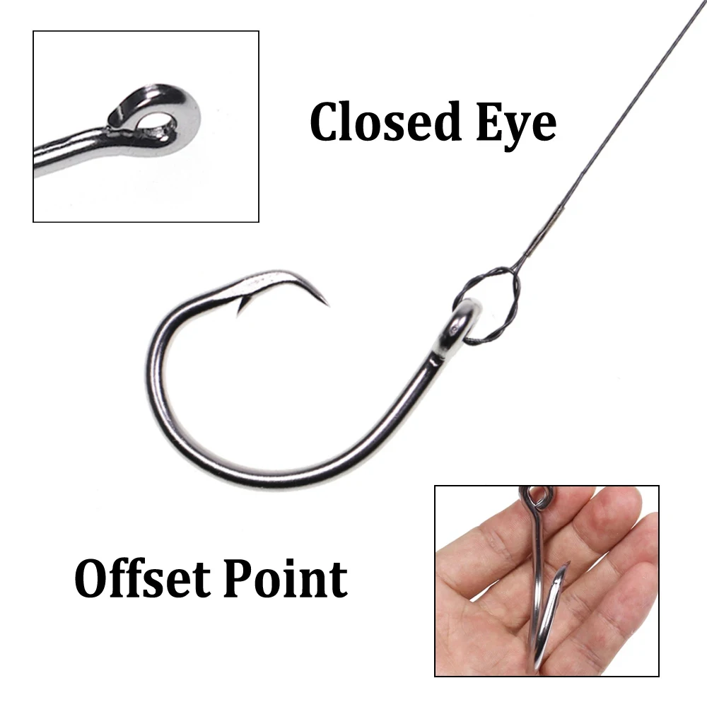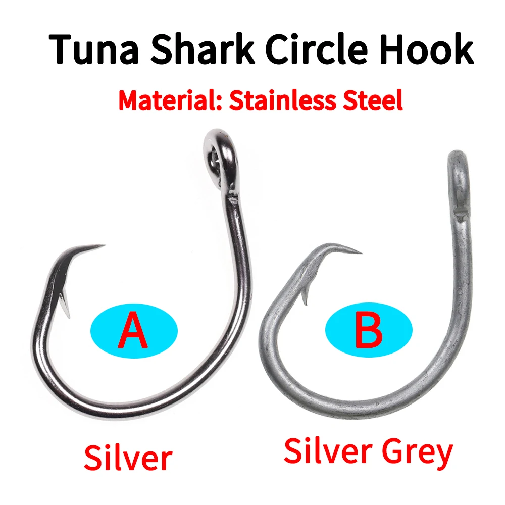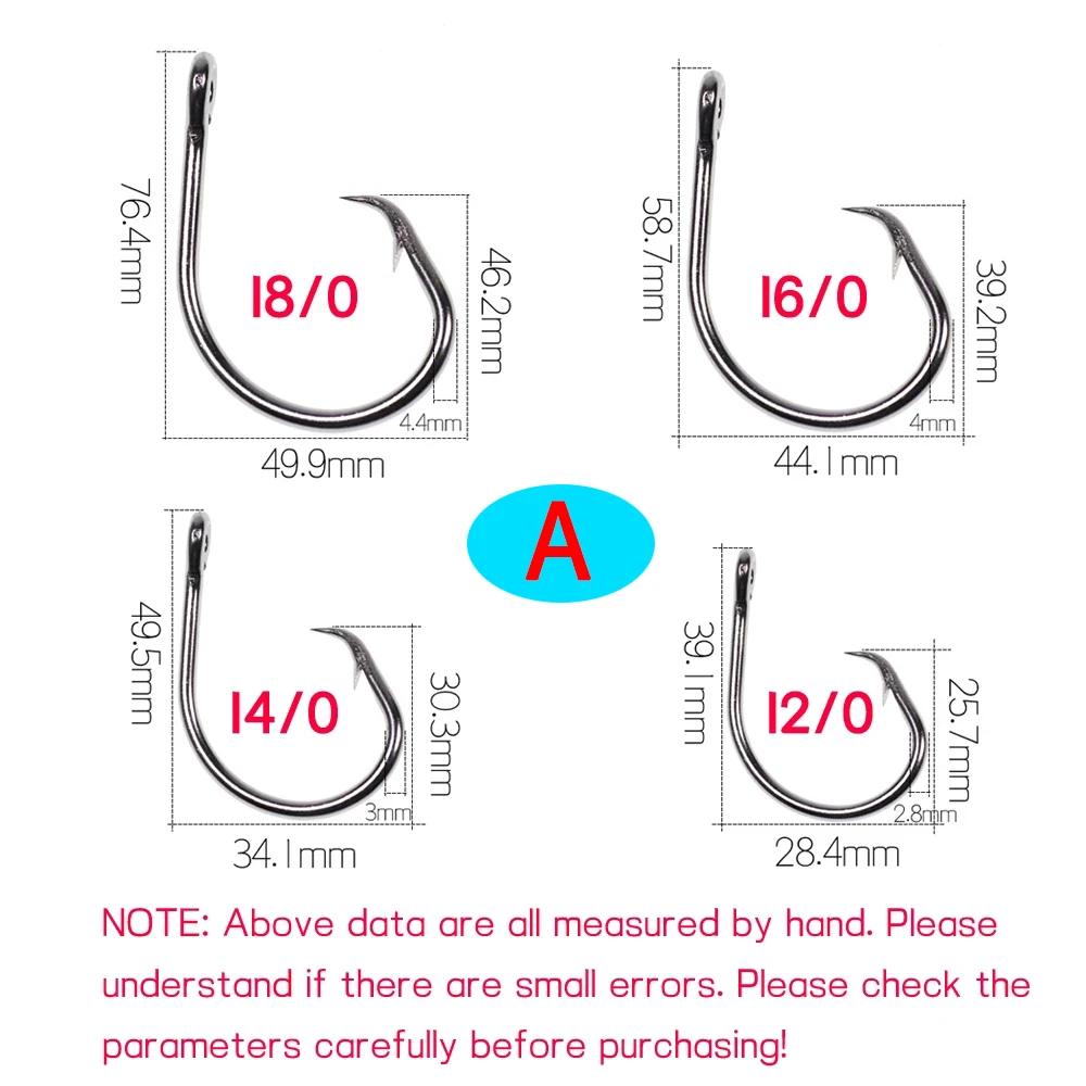 Elllv 10/0 - 18/0 círculo de acero inoxidable anzuelo de compensación de pesca de agua salada de alta resistencia para pesca con curricán de mar y tiburón de atún