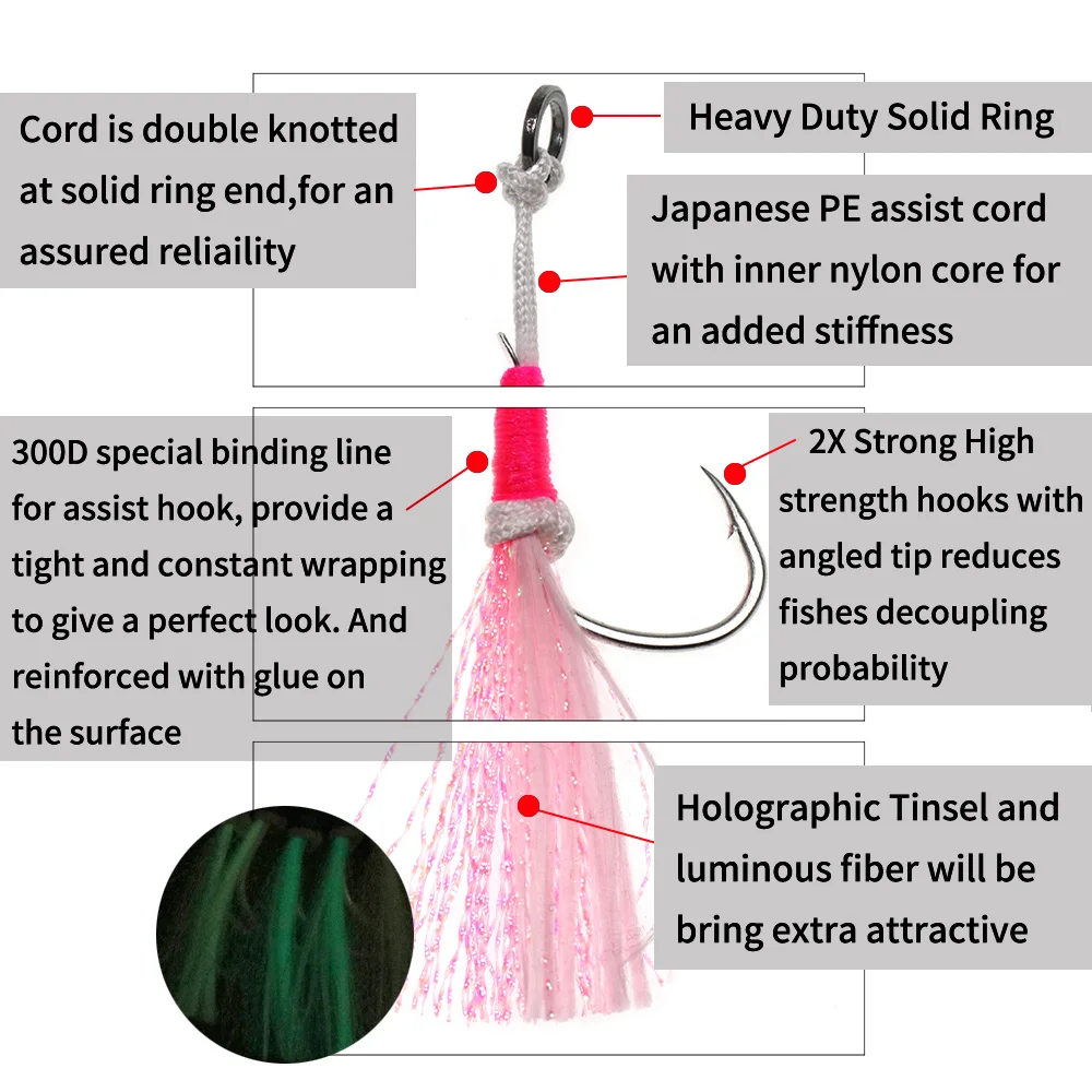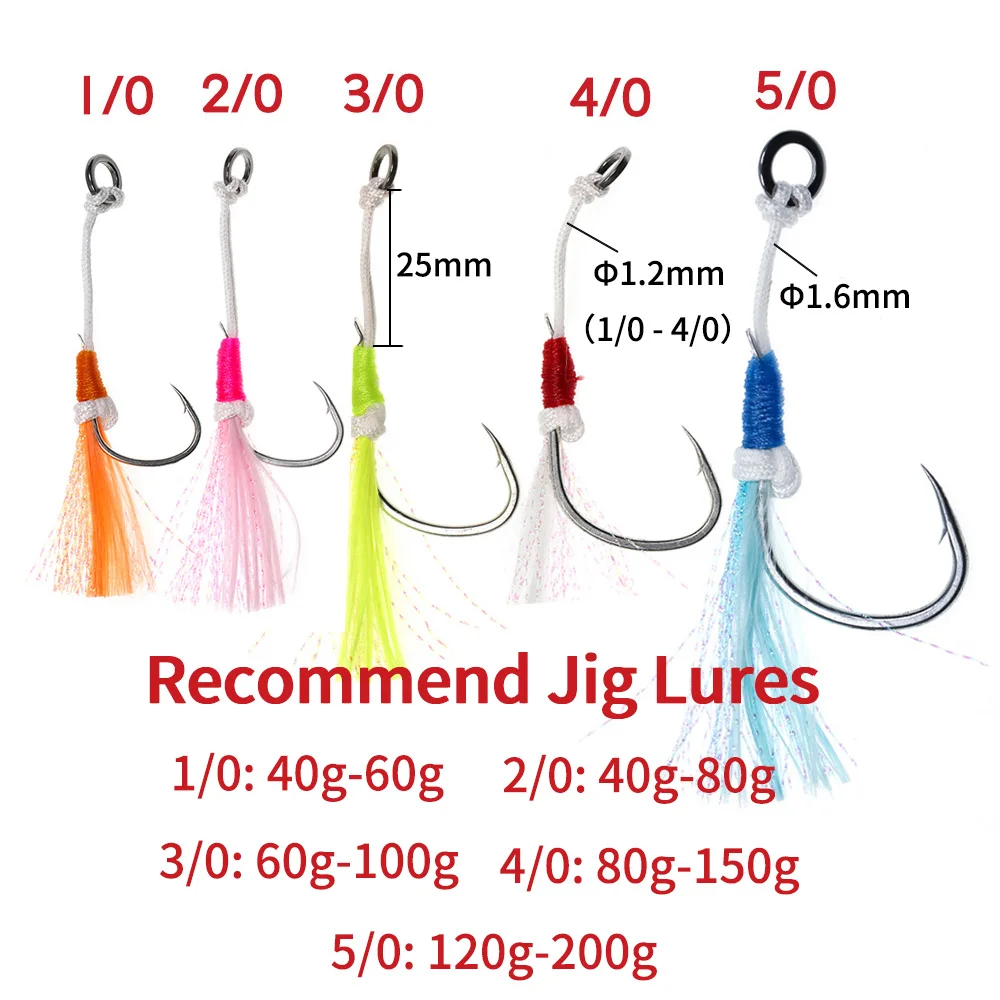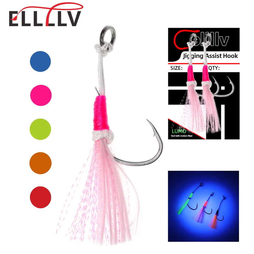 Elllv 2 unids/bolsa pesca marina gancho de ayuda de Jigging lento línea de PE brillo seda anzuelo señuelo aparejo de pesca 1/0 2/0 3/0 4/0