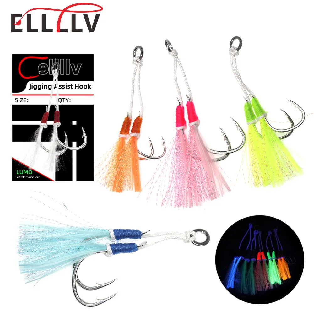 Elllv 2 bolsas 1/0 -5/0 pesca en el mar lento Jigging ayudar doble anzuelo PE línea brillo seda resistente anzuelo señuelo aparejos