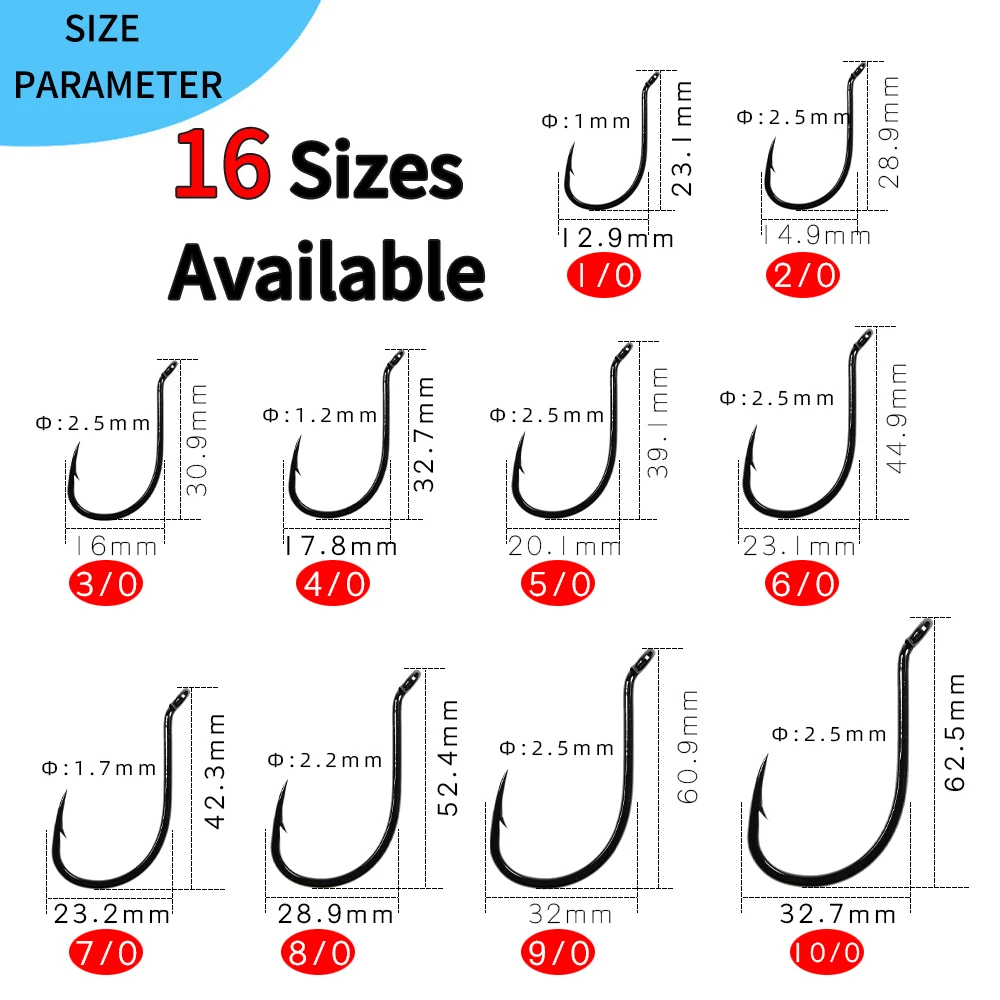 Elllv-Anzuelo de acero al carbono para pesca de agua dulce y agua salada, anzuelo con pico de pulpo negro de níquel, #10-10/0, 100, 0