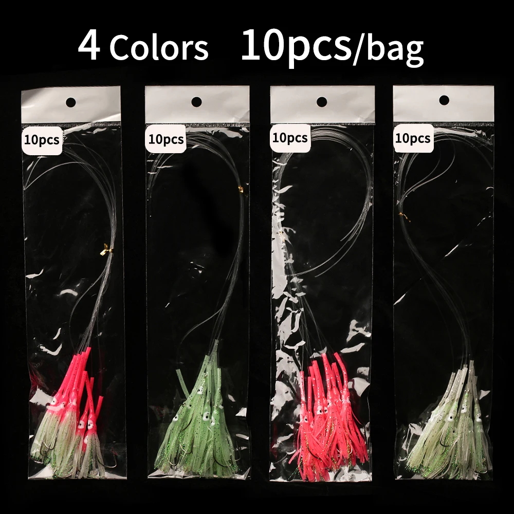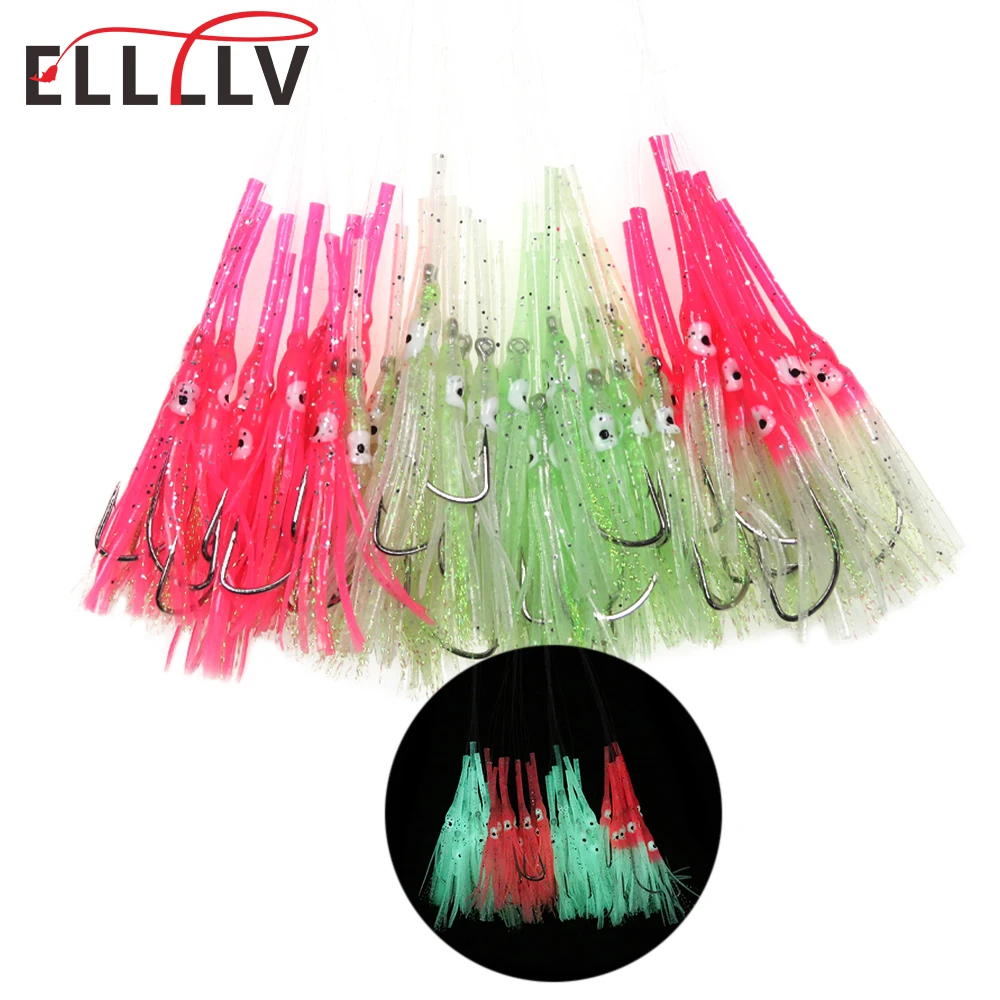 Elllv-Faldas de calamar luminosas antimordeduras con línea de monofilamento, señuelo de pesca de arenque, caballa de agua salada, 3/0,