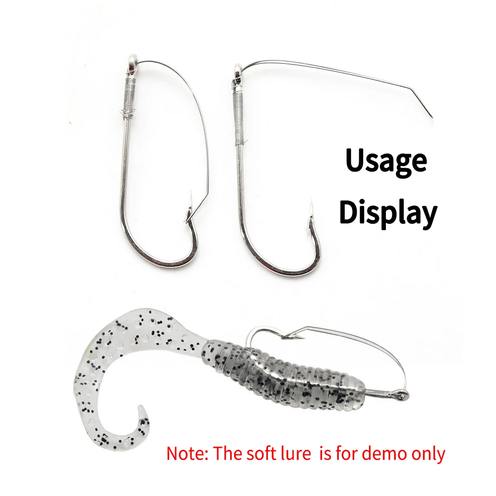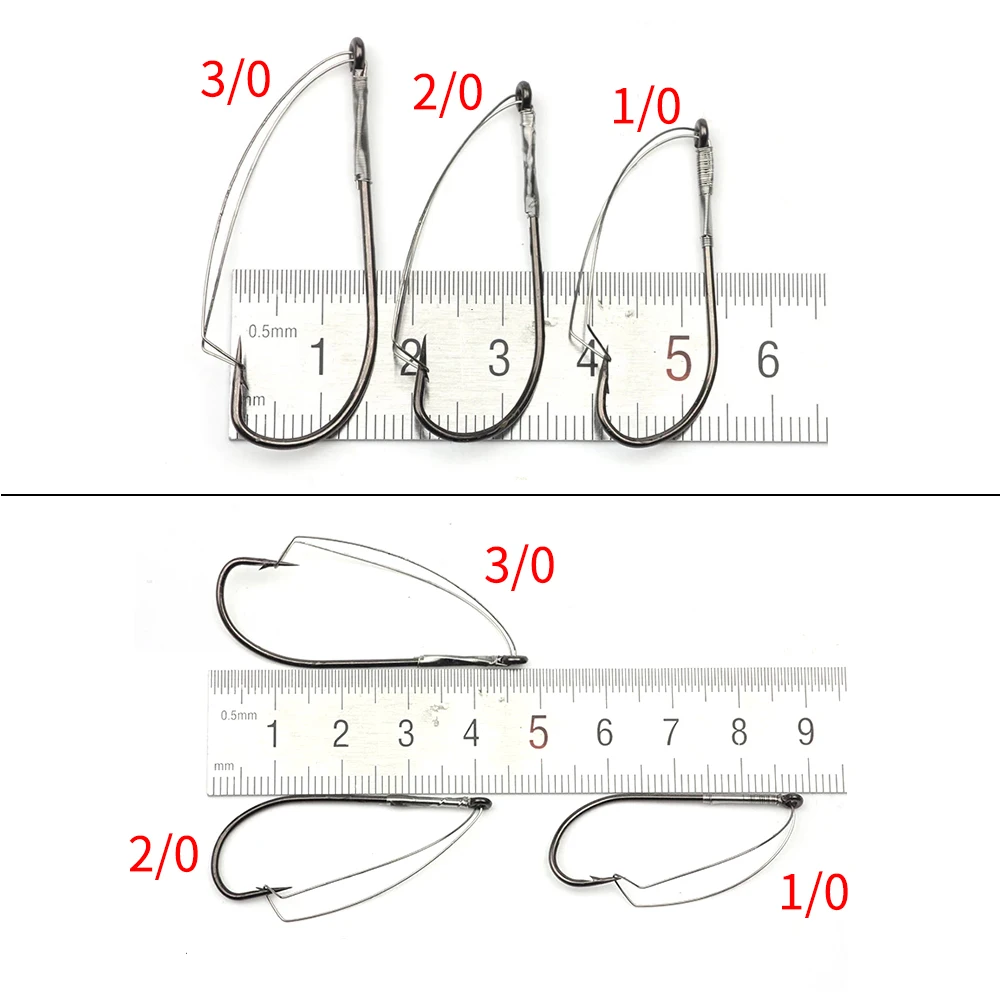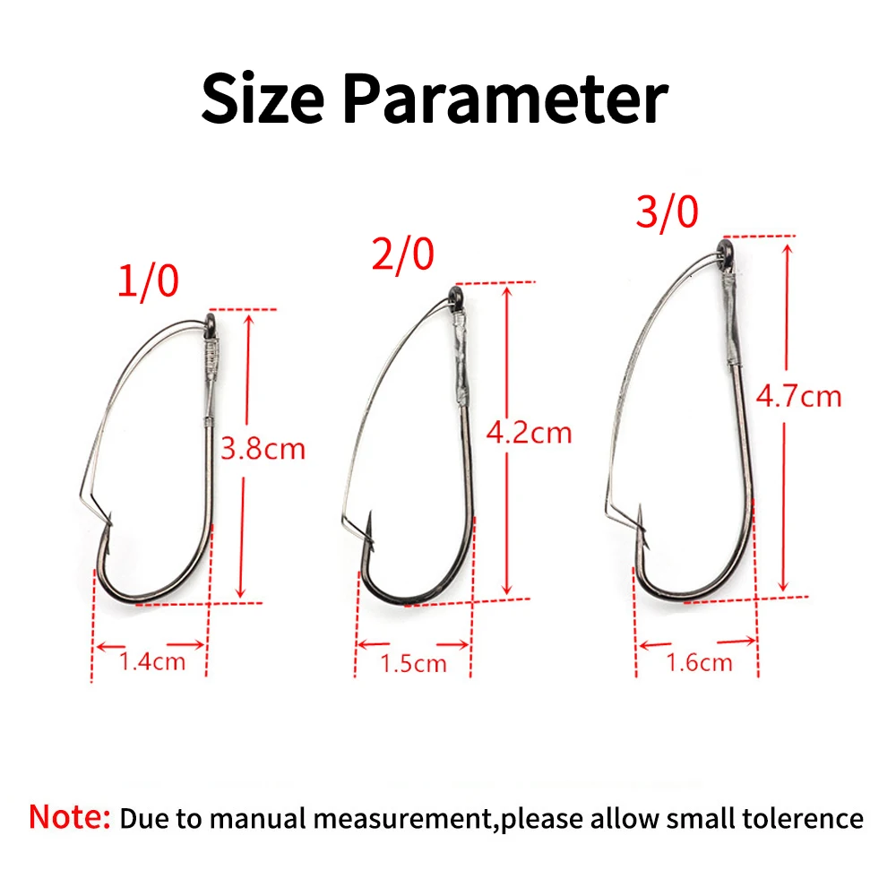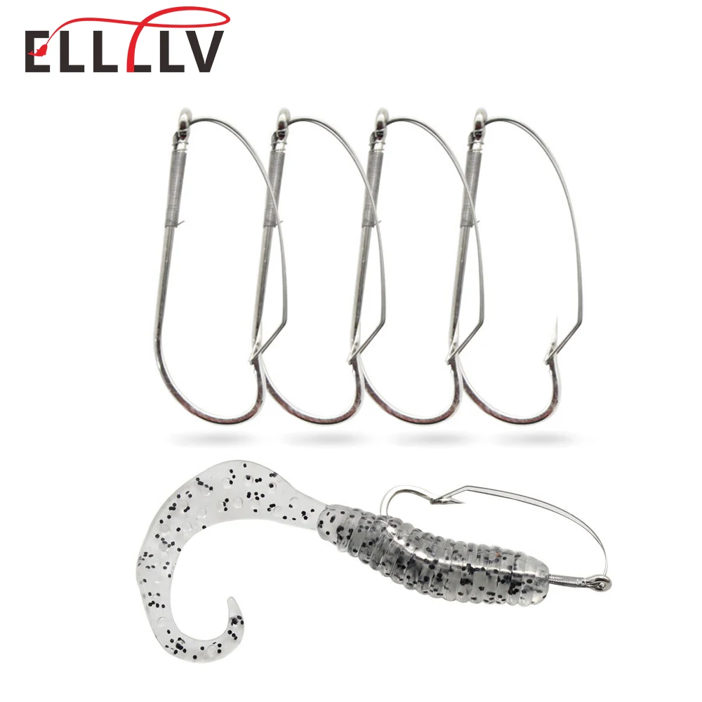 Elllv 10 unids/caja Weedless púas gancho de pesca tamaños 1/0-3/0 de acero al carbono bajo único gusano gancho cebo titular