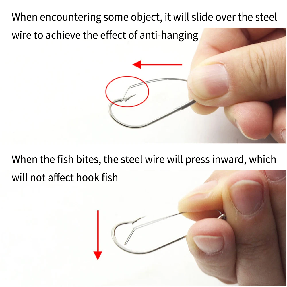 Cuando el pez pica, el cable de acero presionará hacia dentro, lo que no afectará al anzuelo.