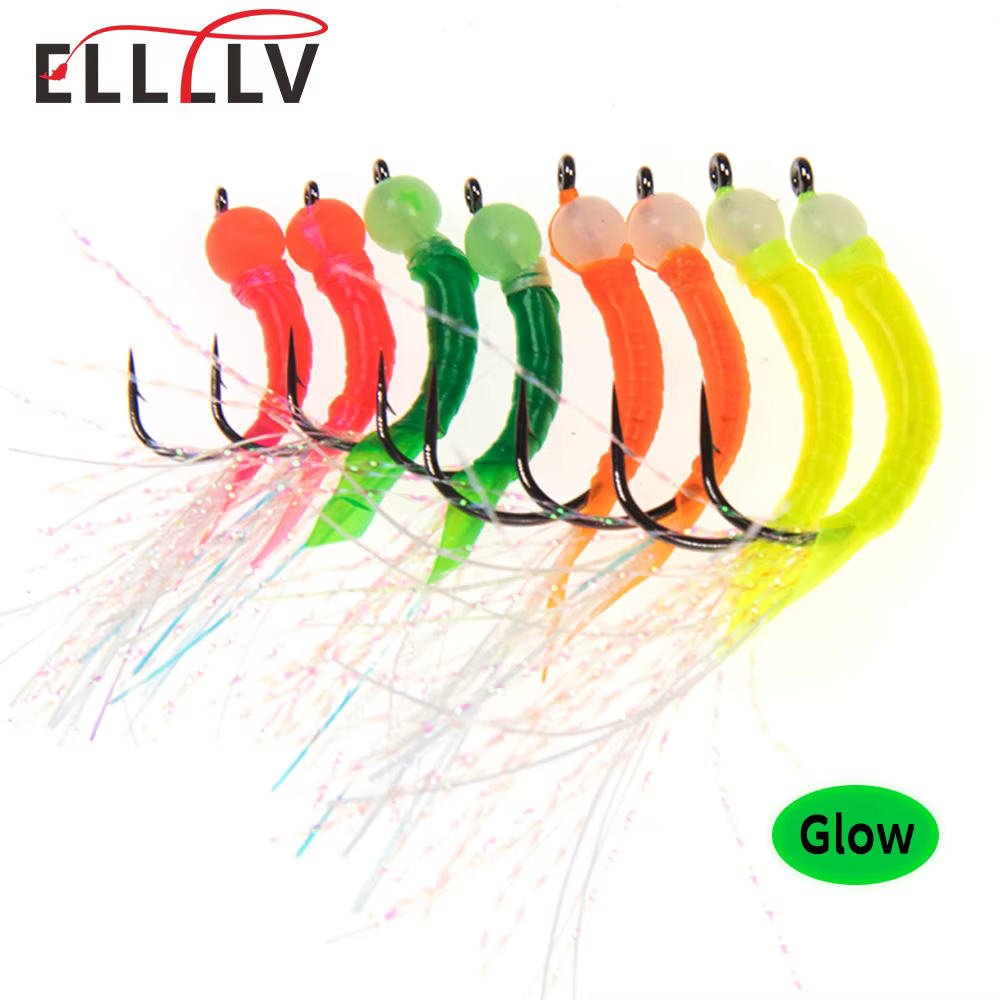 Elllv Offshore Sabiki Rig Gusano Anzuelos Pesca de lubina Mosca con Glow Beadhead Flash Tinsel Tail Pike Perch Caballa Fishiing Lure
