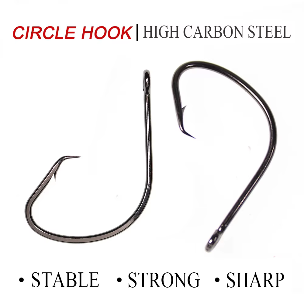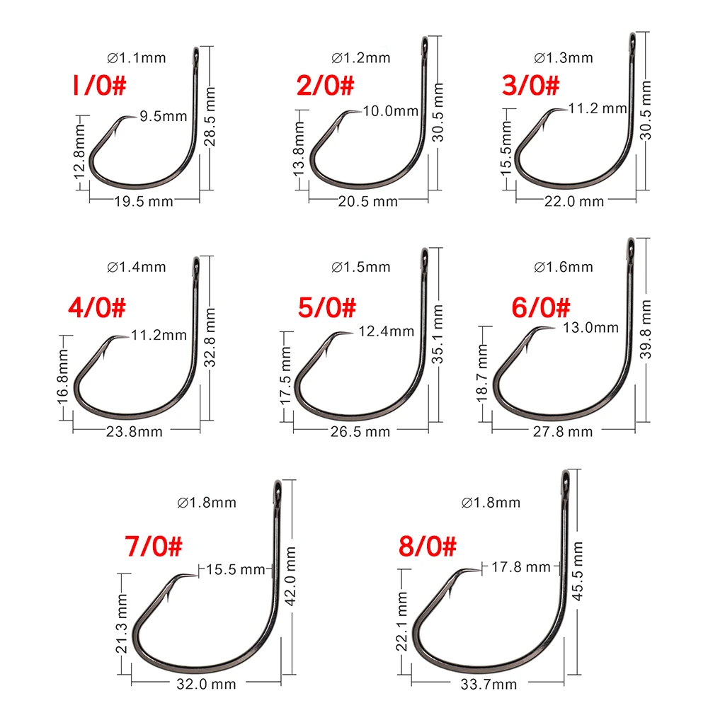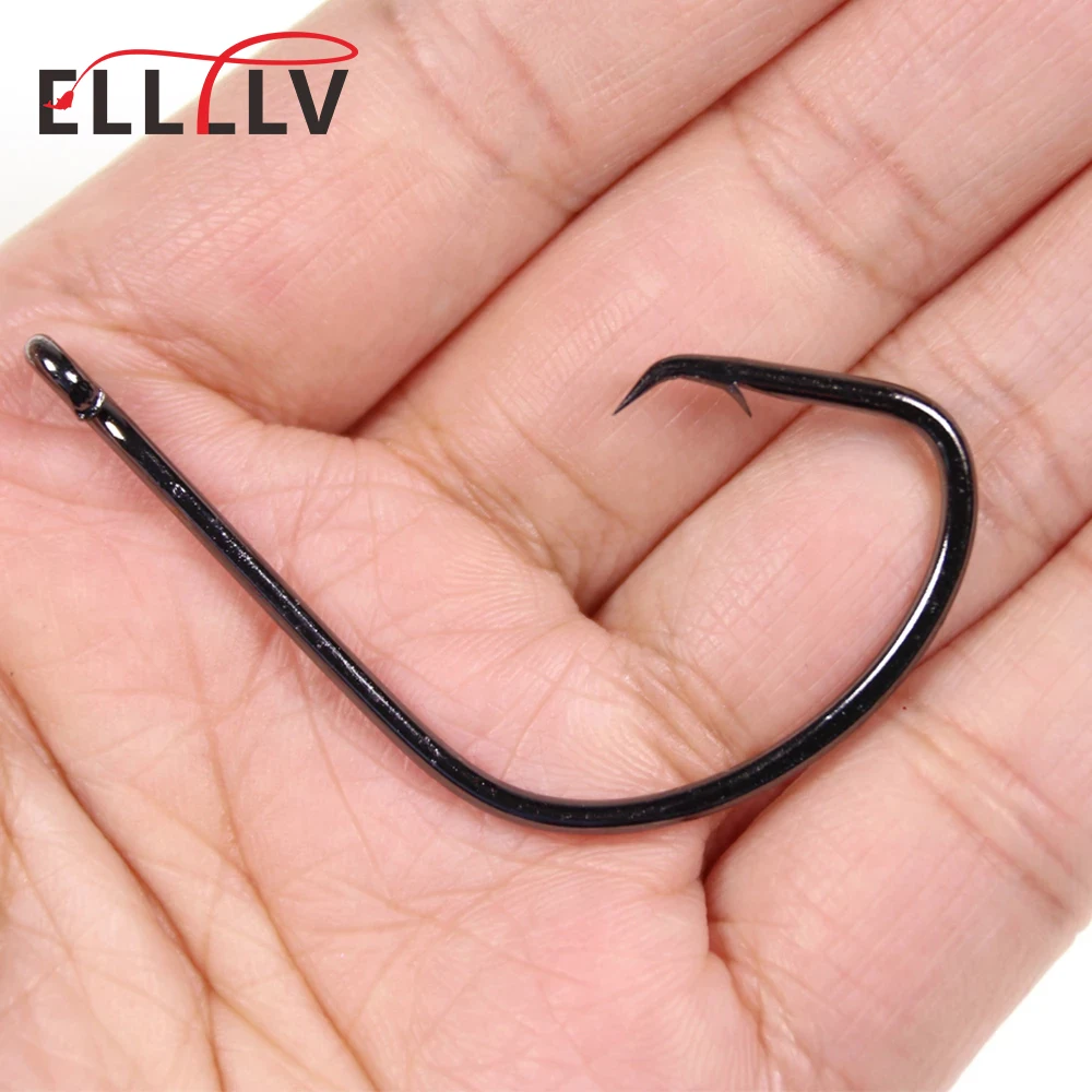 Elllv 200 piezas #1/0 - #8/0 gancho de pesca de agua salada Color negro Círculo Deportivo anzuelos de pescado precio al por mayor aparejos de pesca