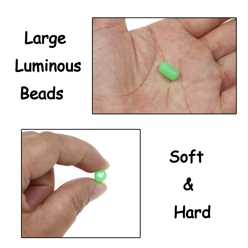 Elllv 100 Uds 7*12mm gran cilíndrico suave y duro pesca cuentas luminosas agua salada pesca brillo aparejos cuentas señuelo cebo