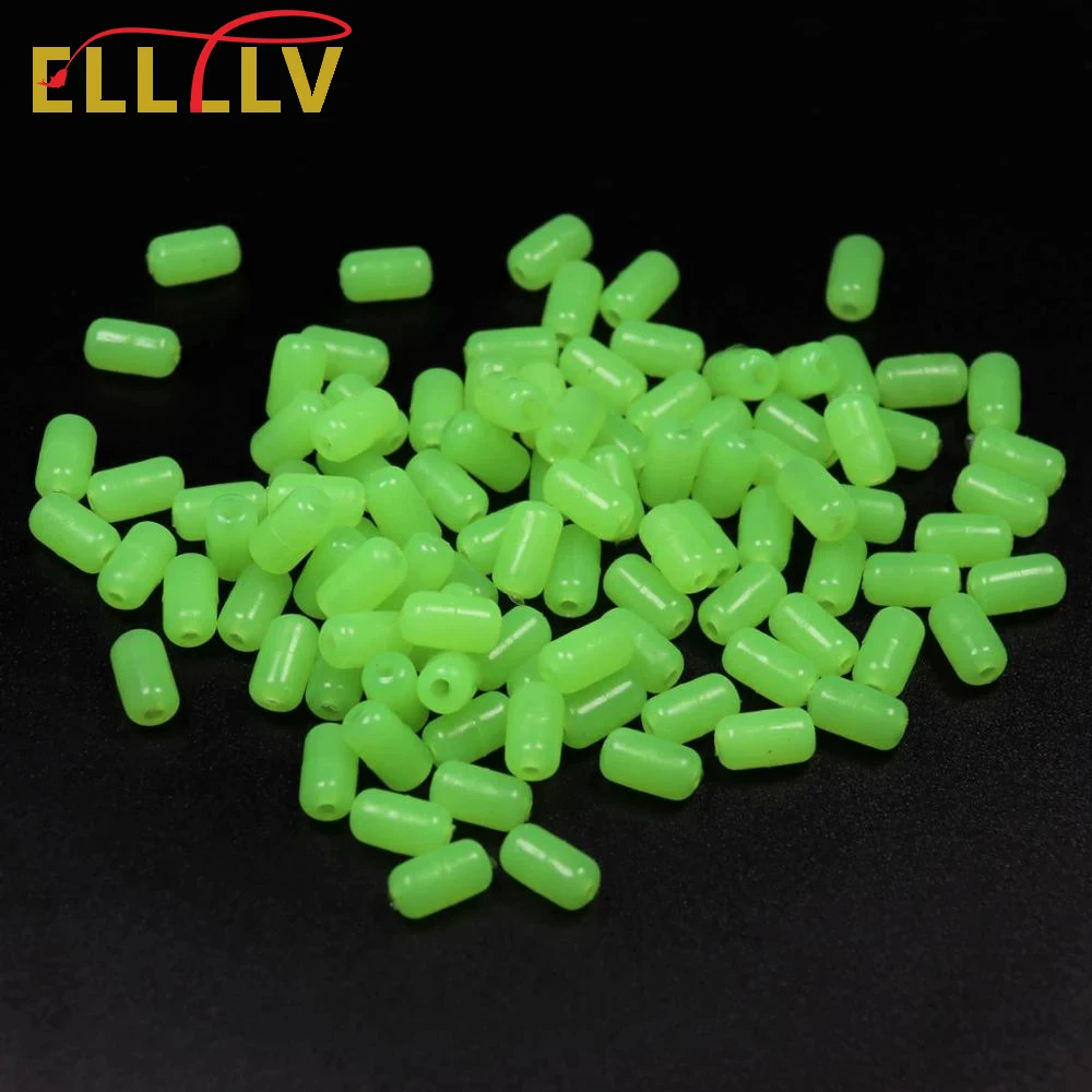 Elllv 100 Uds 7*12mm gran cilíndrico suave y duro pesca cuentas luminosas agua salada pesca brillo aparejos cuentas señuelo cebo