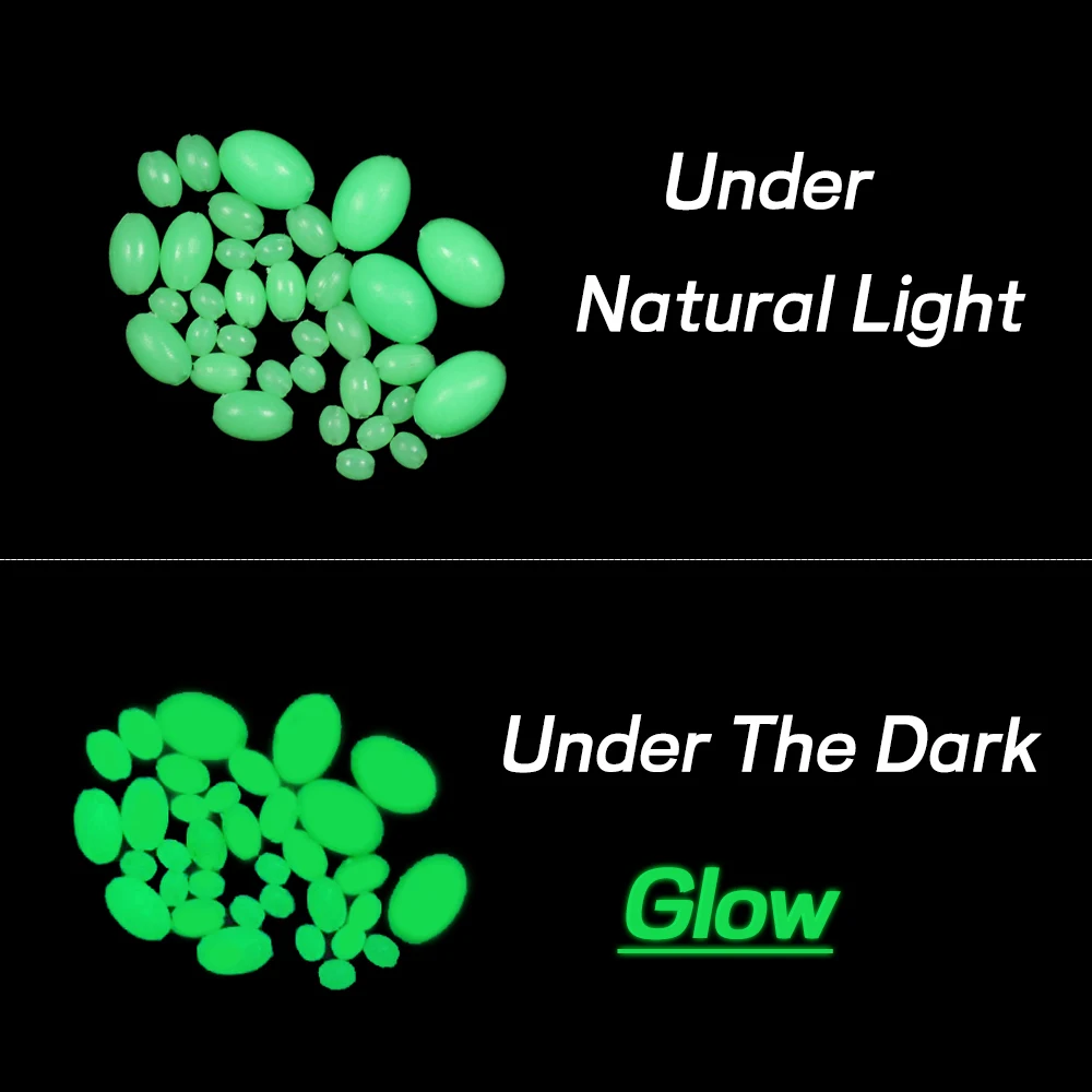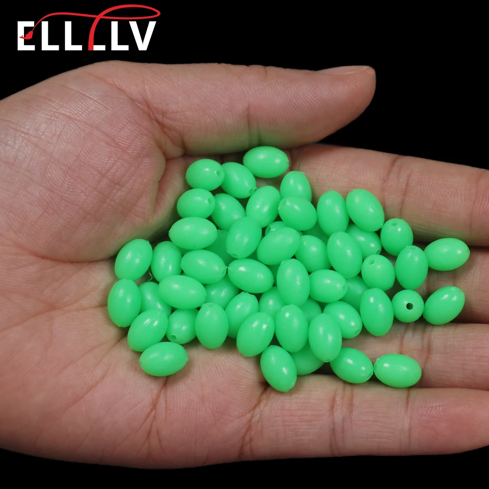 Elllv 1000 Uds forma ovalada verde resplandor cuentas de pesca frijoles duros luminosos aparejo de pesca Terminal aparejos al por mayor 3x4mm 5x8mm 7x10mm