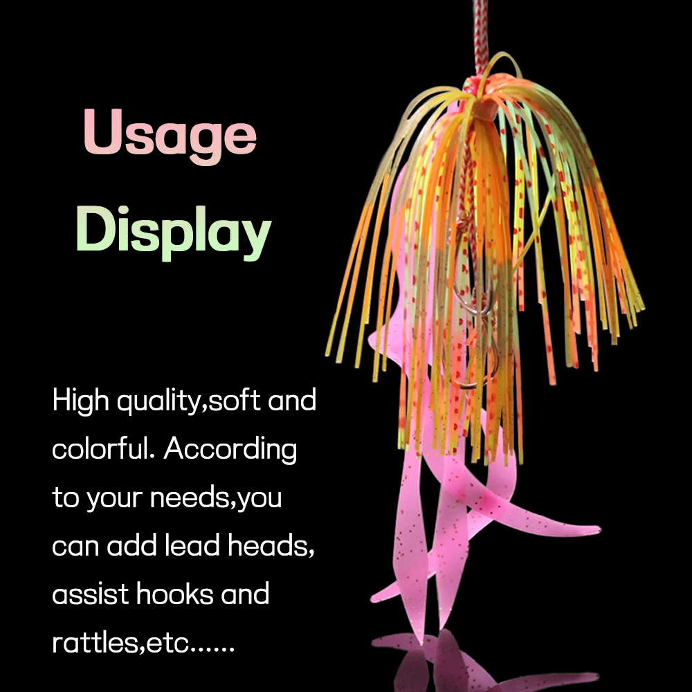 -Característica: alta calidad, suave y más colorido. Según sus necesidades, puede agregar cabezales de plomo, ganchos de asistencia y sonajeros, etc. Utilizado principalmente para la producción de Buzzbait y Spinnerbait. Son muy prácticos y le brindarán la diversión del bricolaje.